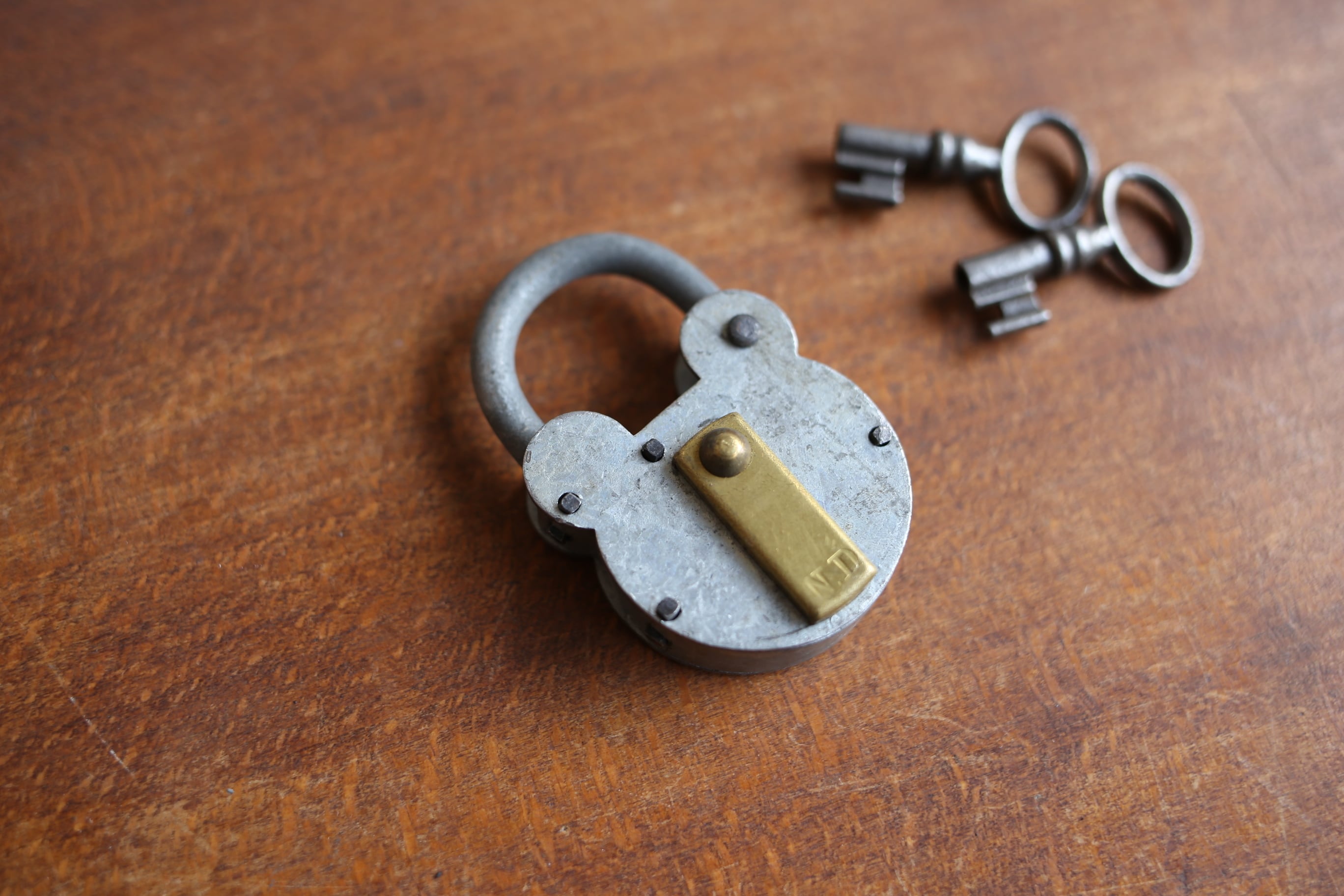 フランス アンティーク ヴィンテージ クマ型 南京錠 パドロック(小)鍵2本付き N-01529p
