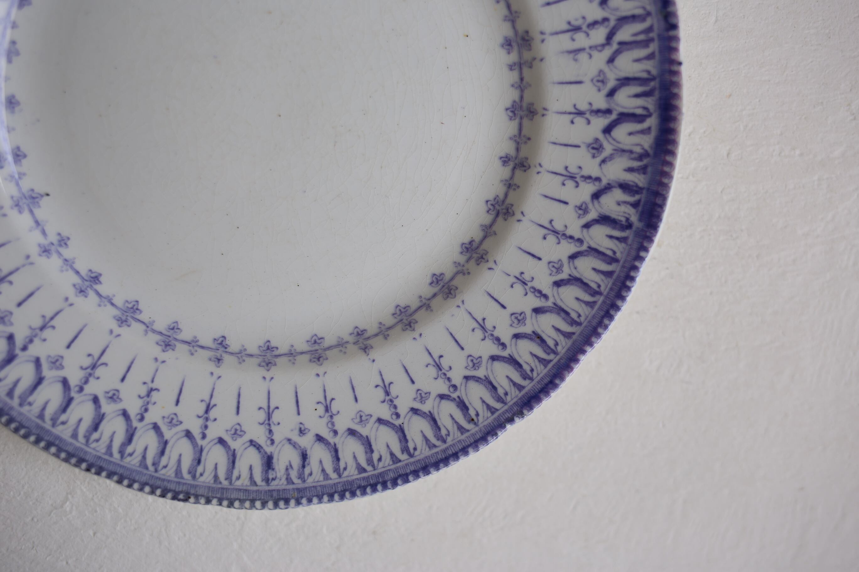 フランス アンティーク Creil et Montrereau クレイユモントロー 『Flora rocaille』デザートプレート 19.5cm パープル N-03034a