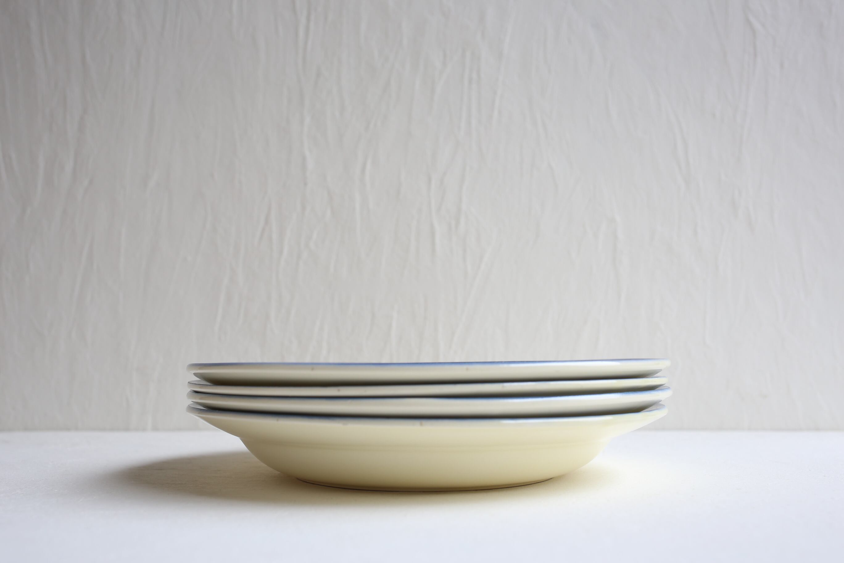 若干のカトラリー跡や縁のスレ、微細なチップはありますが、その他は製造時のムラや色移り以外に目立つダメージはなく全体的には良い状態です。