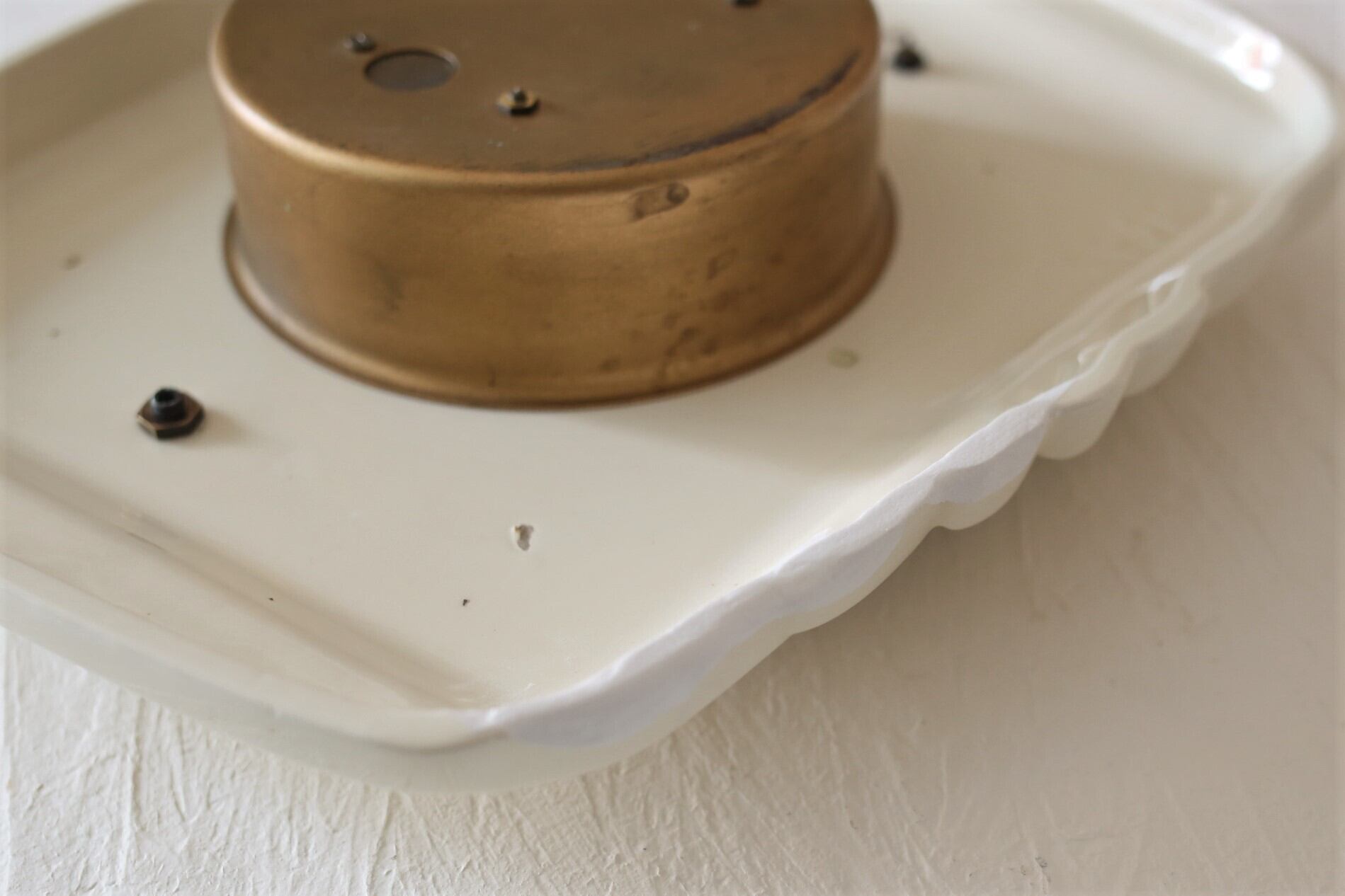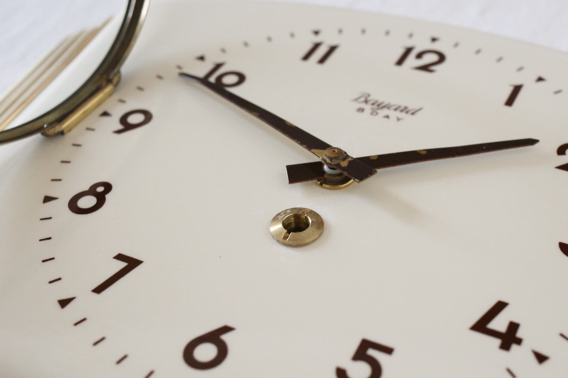 スイープ式クォーツ交換:フランス アンティーク ヴィンテージ BAYARD 陶器製 壁掛け時計 アイボリー×ゴールド N-03128
