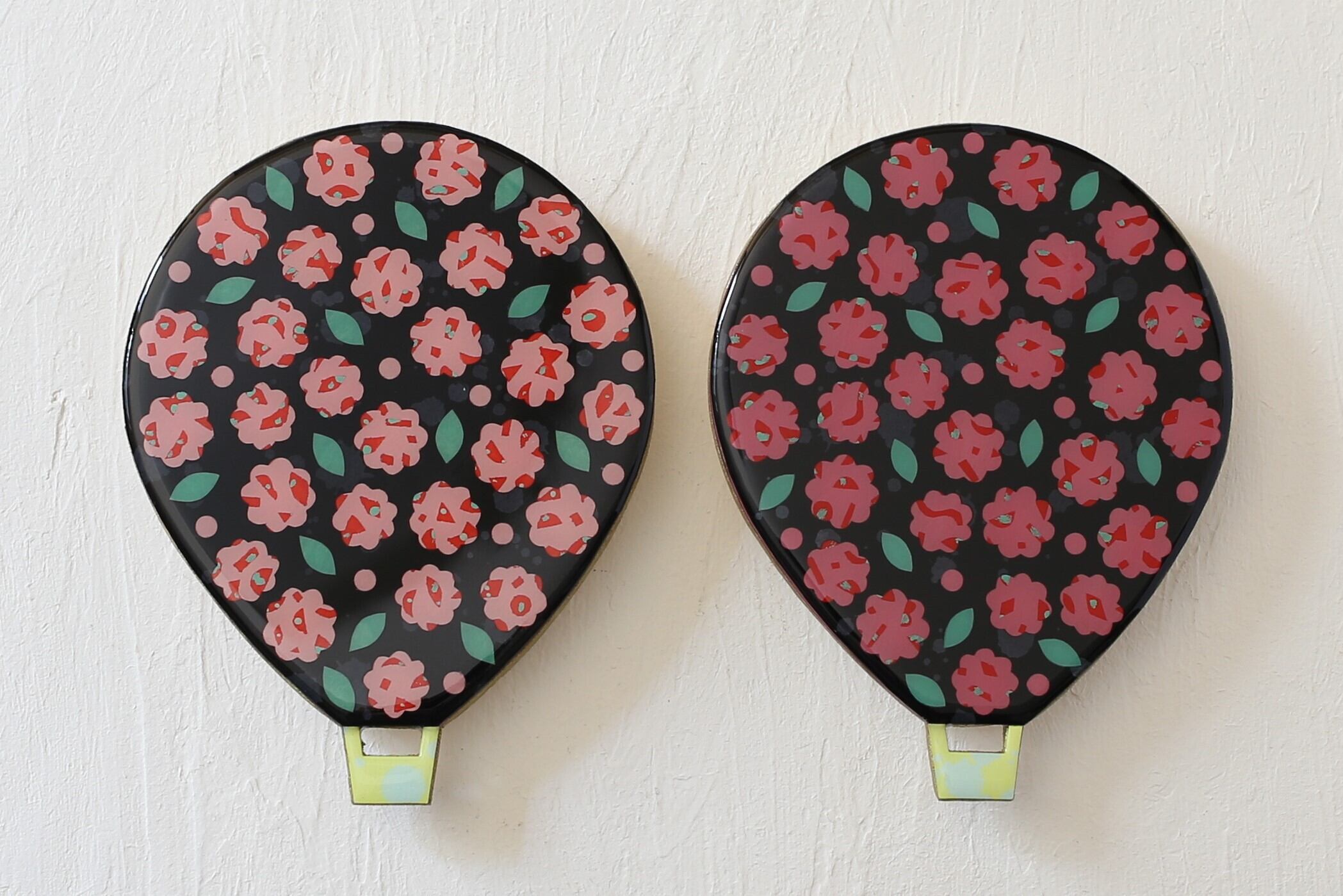 裏面に木片を付けているのでオブジェが壁から少し浮いているように見えます。