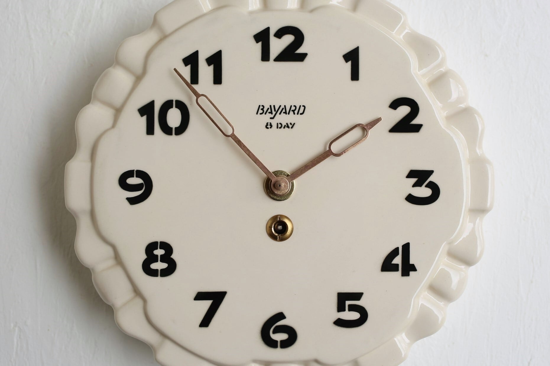 フランス アンティーク ヴィンテージ BAYARD 陶器製 壁掛け時計 (電池式 クォーツ交換済) N-03167