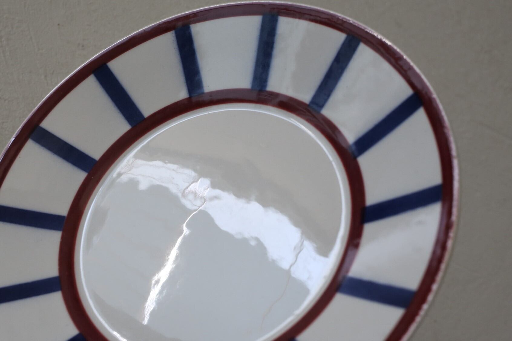 フランス アンティーク ヴィンテージ クレイユモントロー 『Béarn』バスク柄 デザート皿(ソーサー)18cm N-03192s
