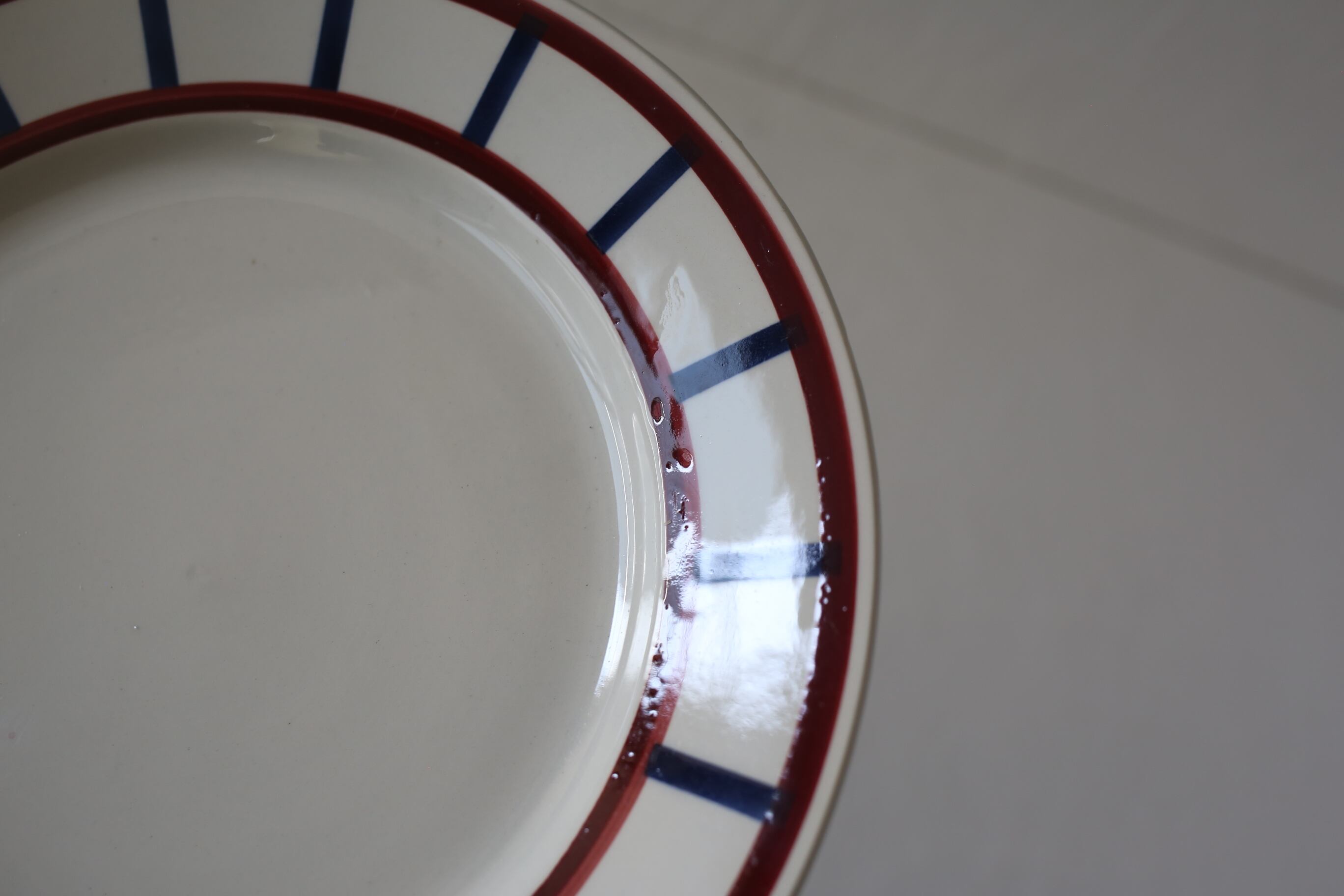 釉薬のムラが少し目立ちますが、カトラリー跡も少なく、全体的には使用感の少ないとても良い状態です。