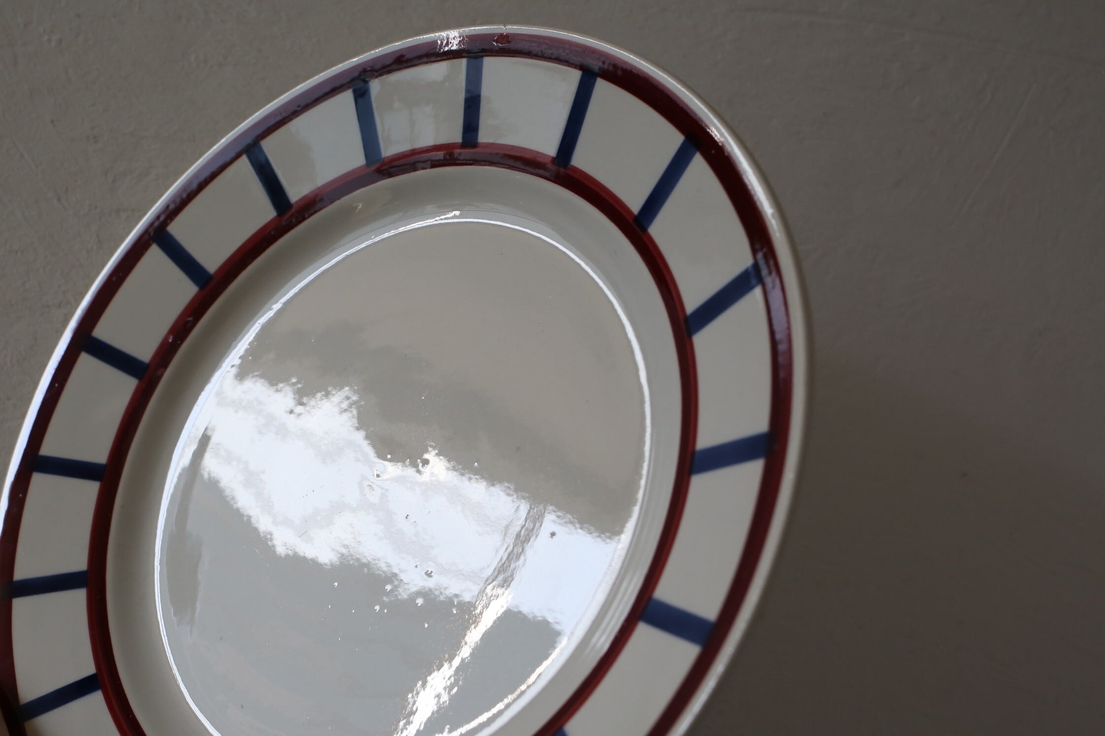 ボルドーとブルーで描かれたバスク柄が素敵な『Béarn』シリーズの大皿でですが、直径28.7cm程と大き過ぎないサイズです。