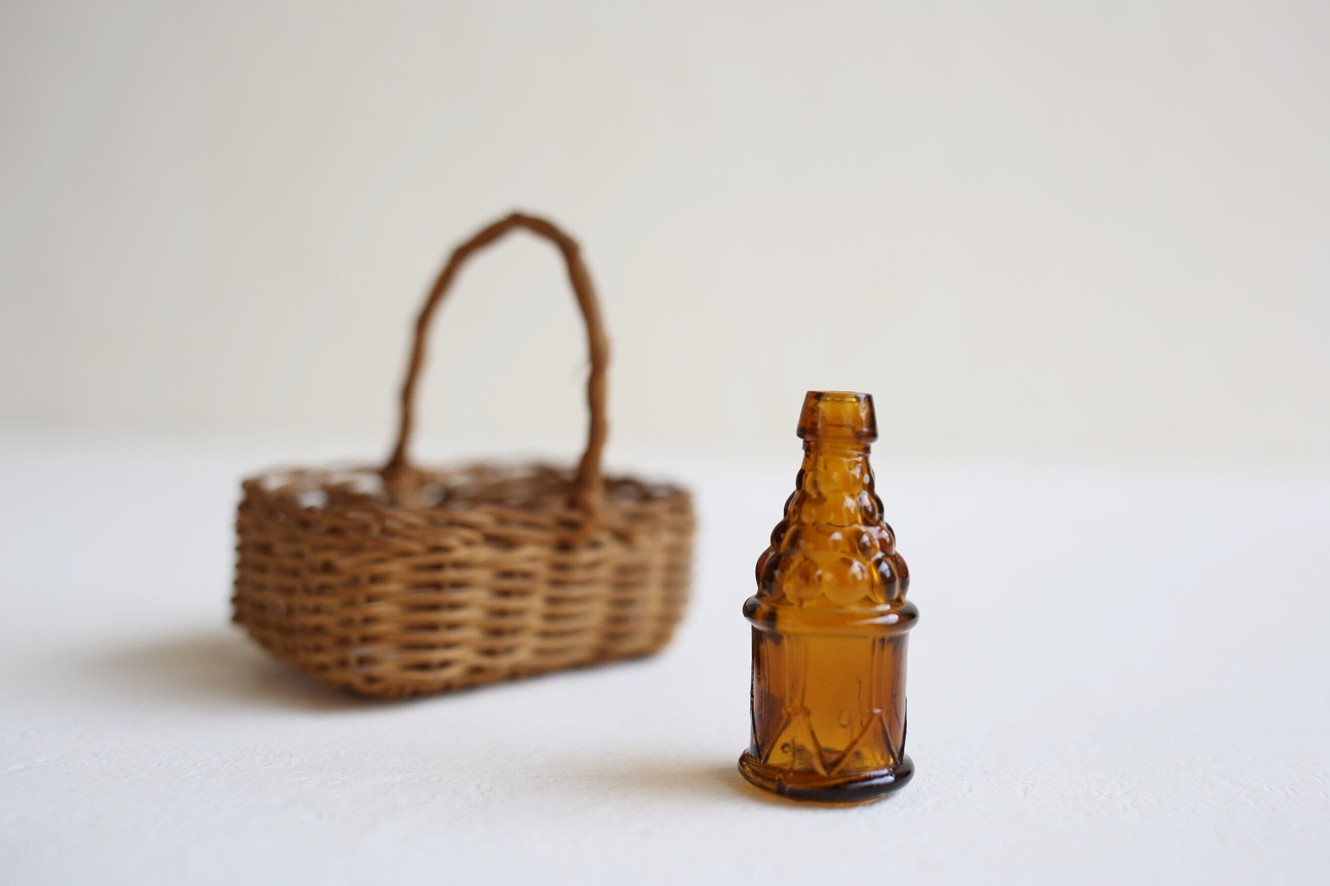 ◆サイズ:カゴ 5.5cm × 8cm × 高さ8.3cm、ボトル 底直径 2.3cm × 高さ5.4cm