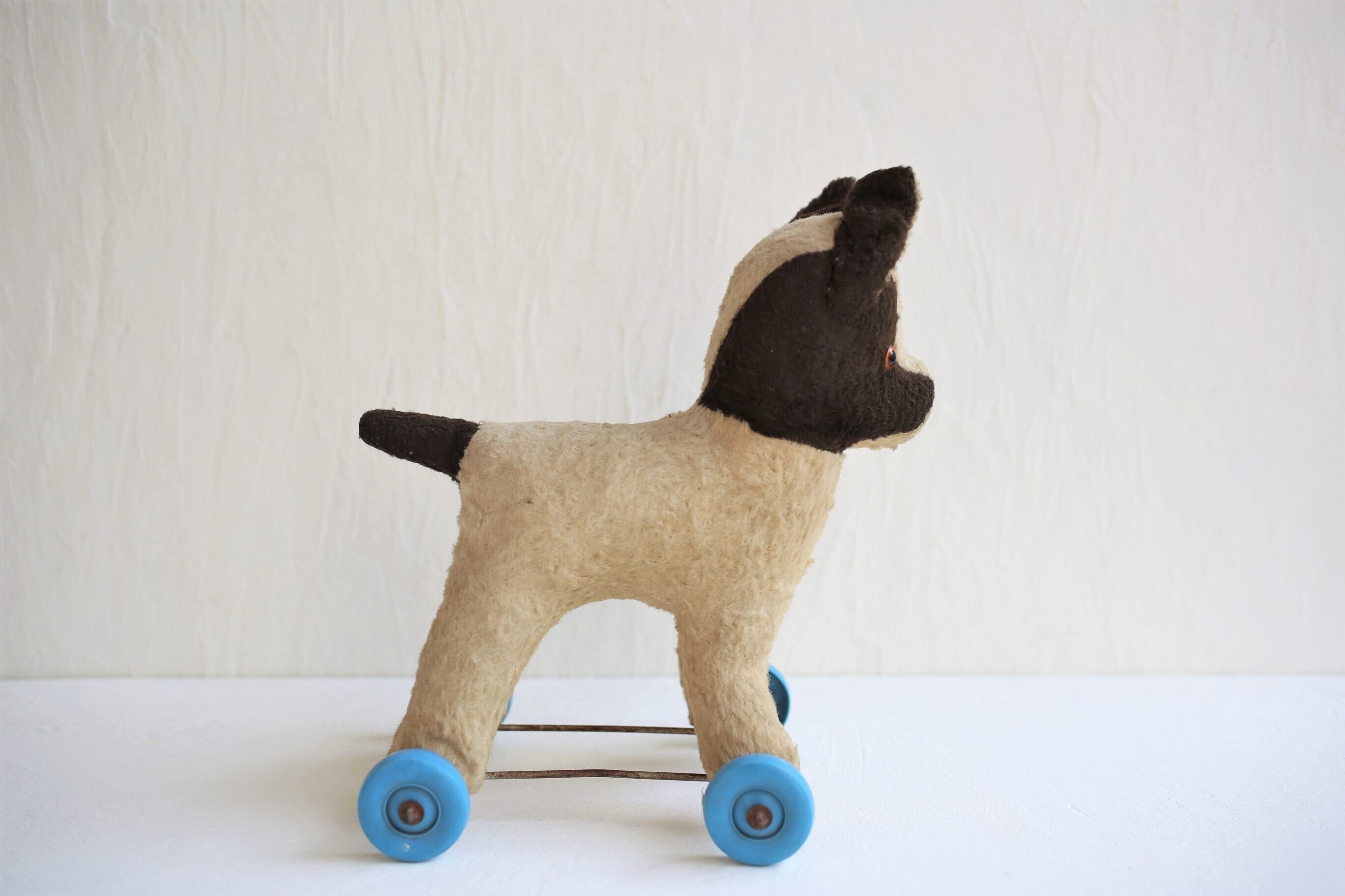 フランス アンティーク ヴィンテージ ブルーの車輪付きのイヌ プルトイ N-03200