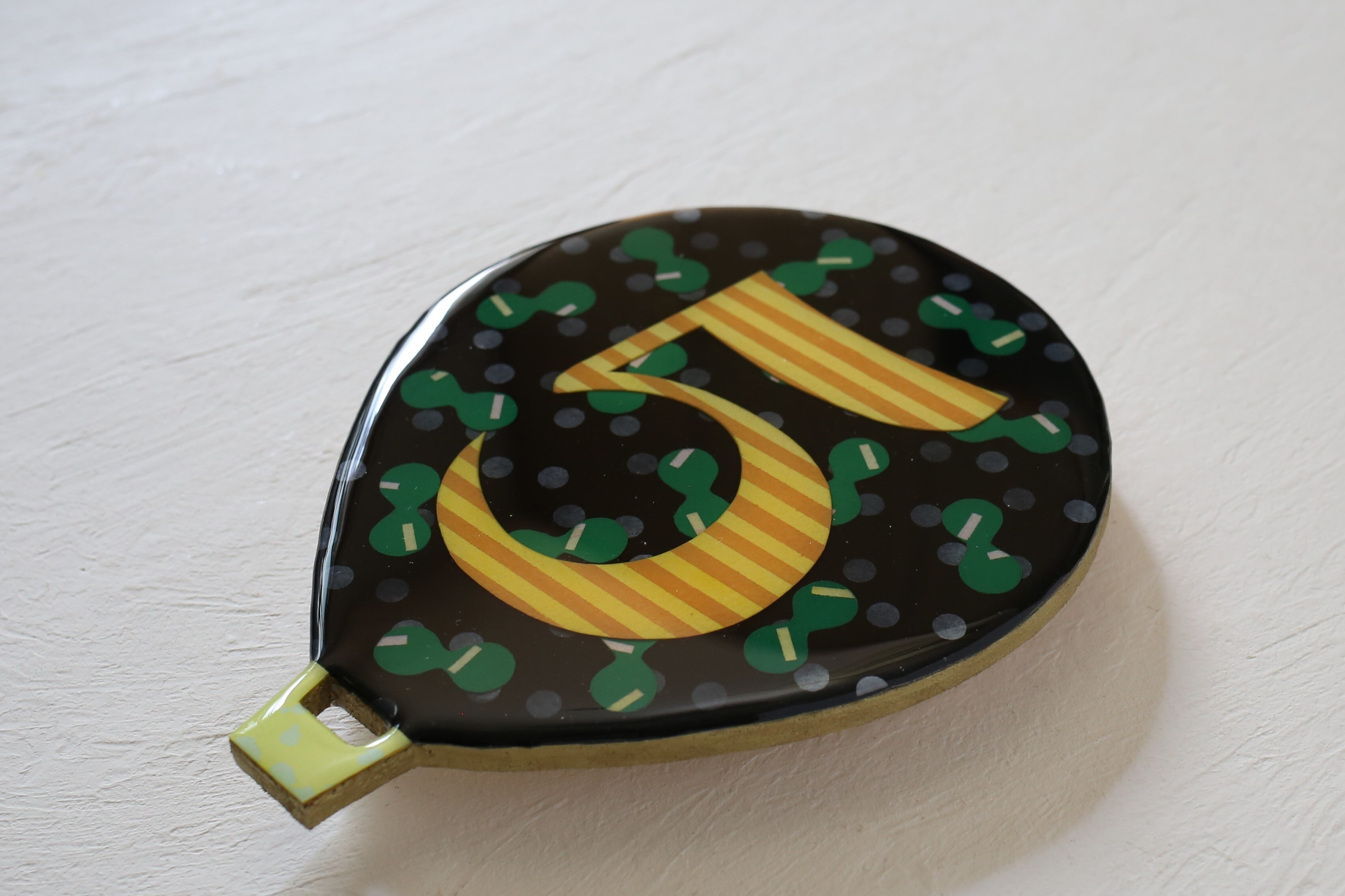 裏面に木片を付けているのでオブジェが壁から少し浮いているように見えます。