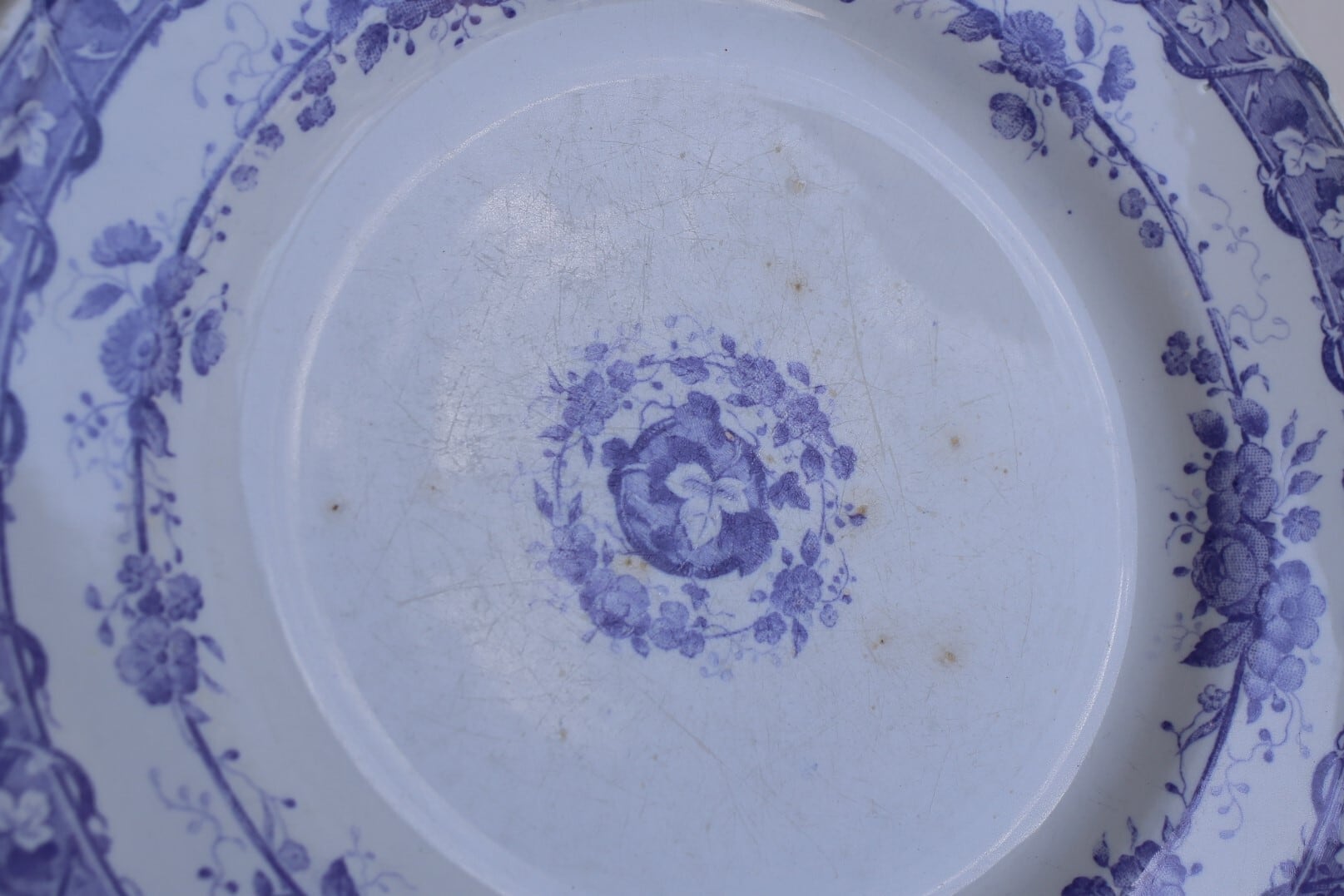 滑らかなフリル、スカラップのような縁と淡いパープルの美しい柄、そしてこの時代のクレイユモントローらしい青みがかった釉薬が何とも魅惑的な器です。