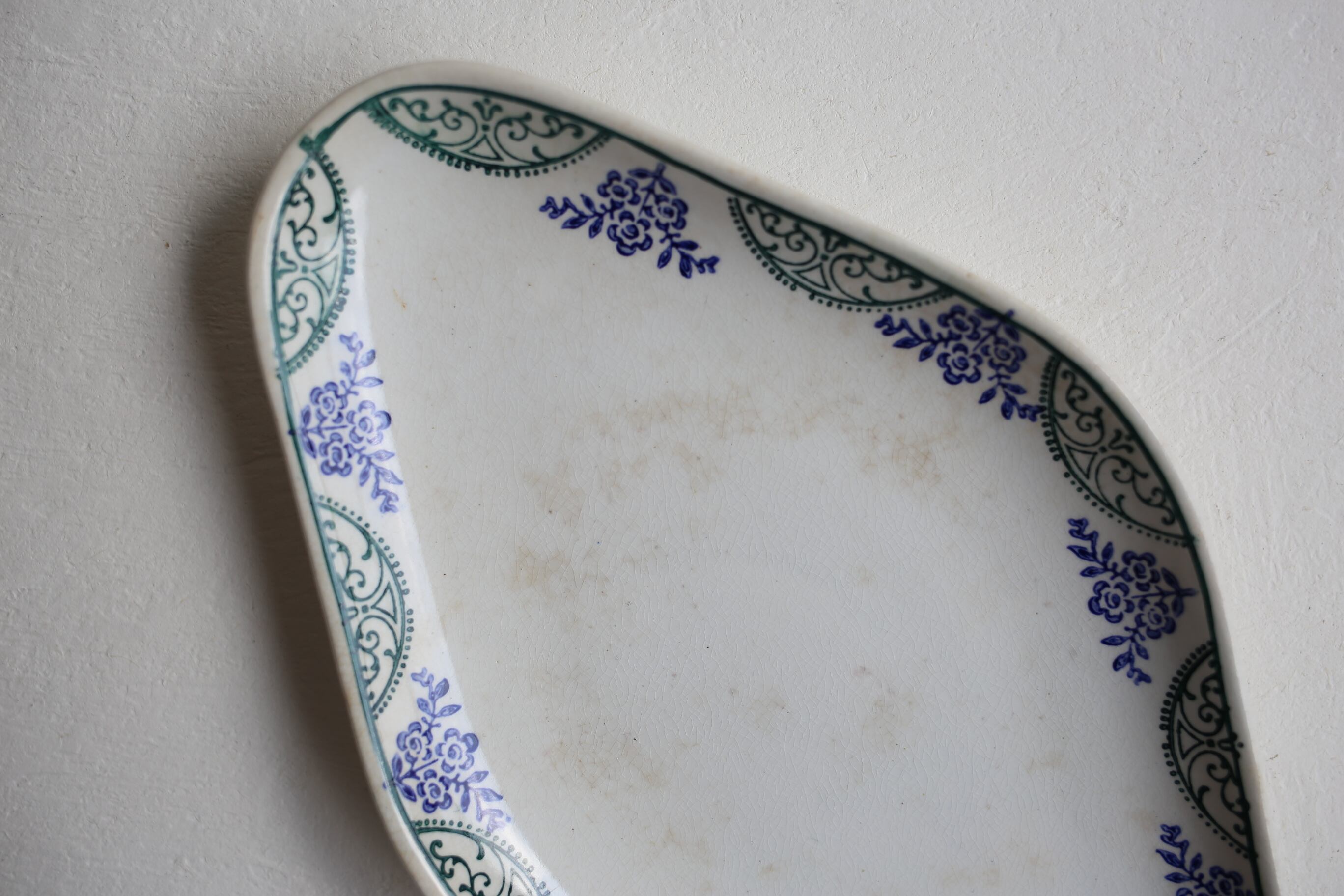 フランス アンティーク ヴィンテージ HAMAGE&MOULIN DES LOUPS窯 ラヴィエ ブルー×グリーン(シミあり) N-03146b