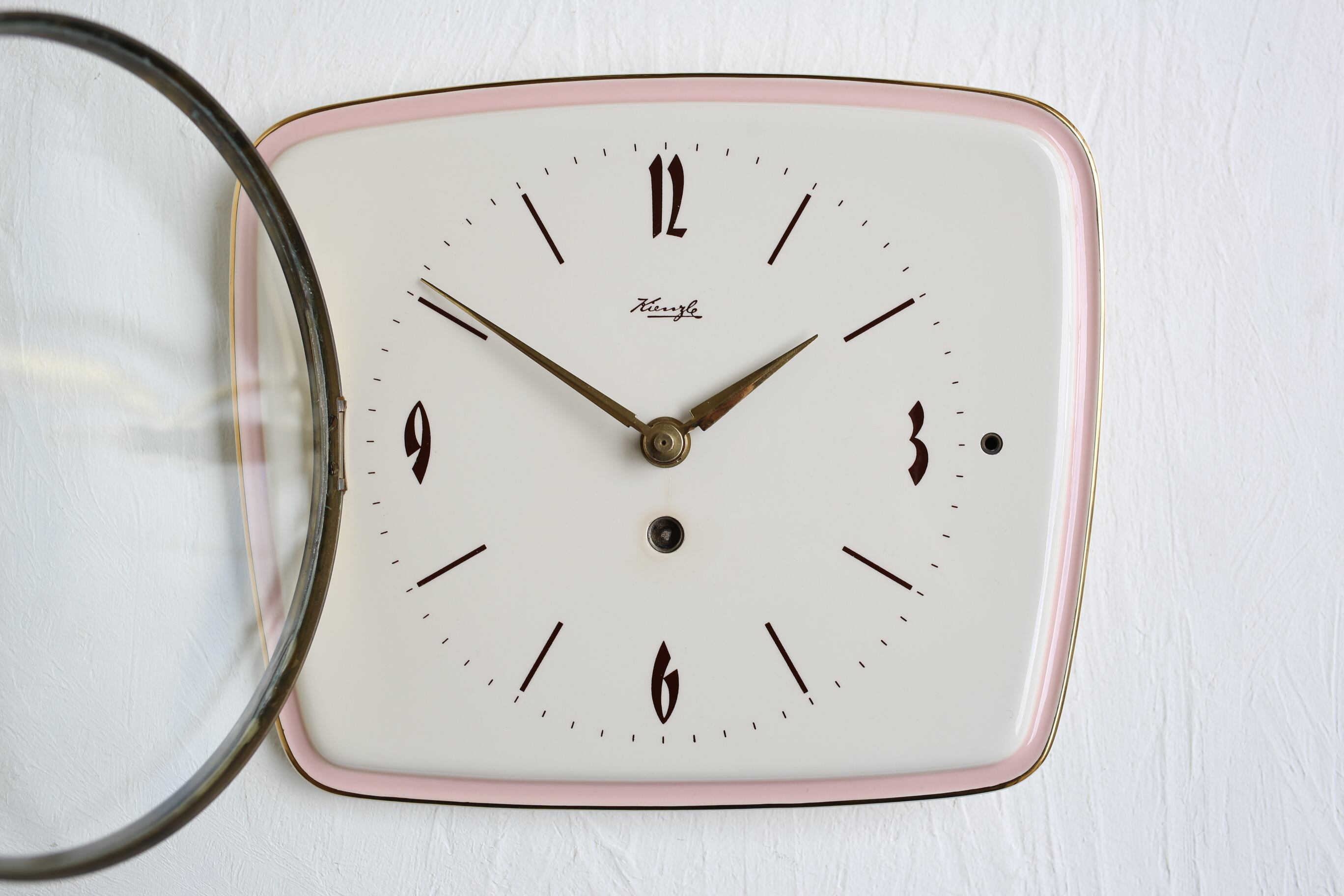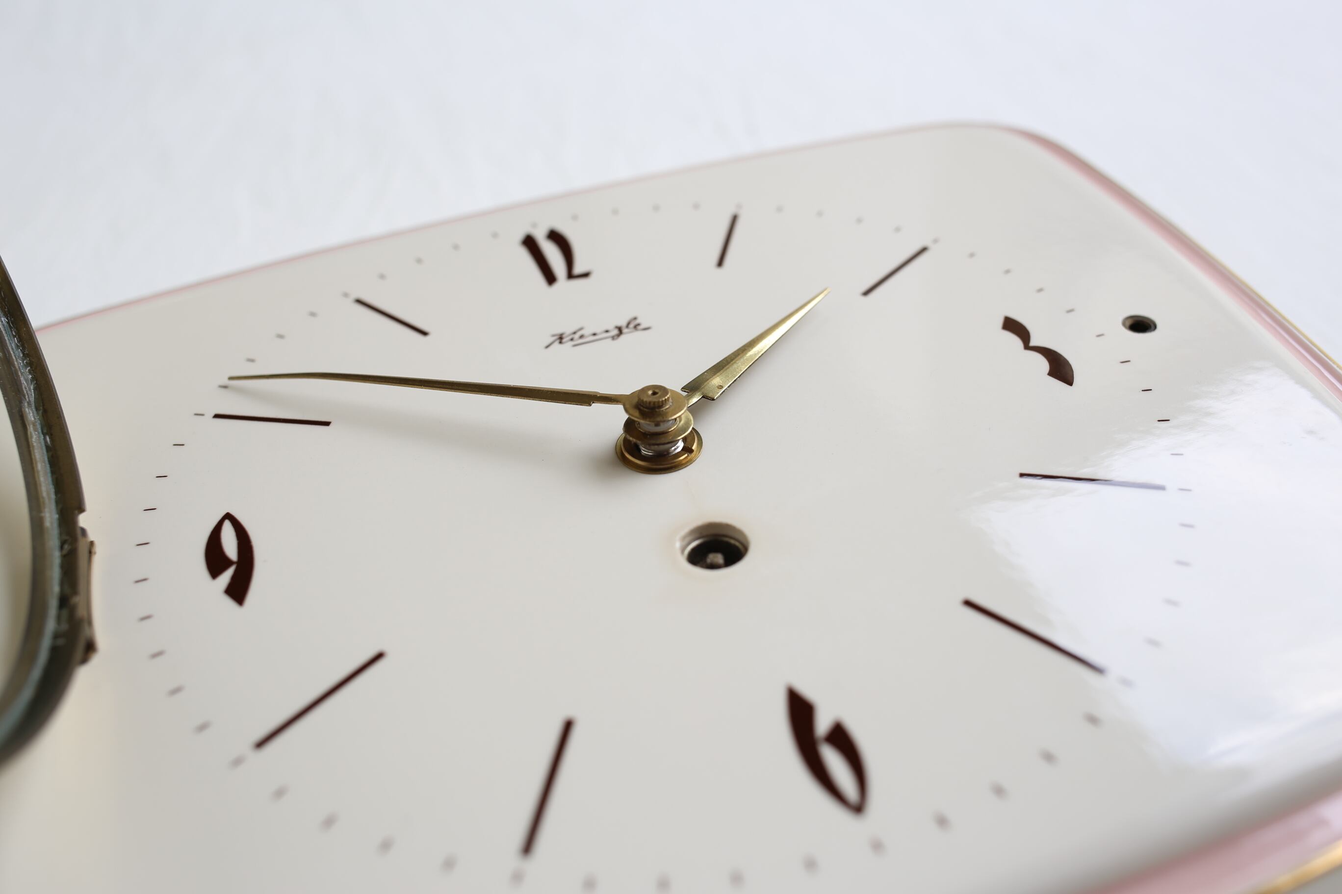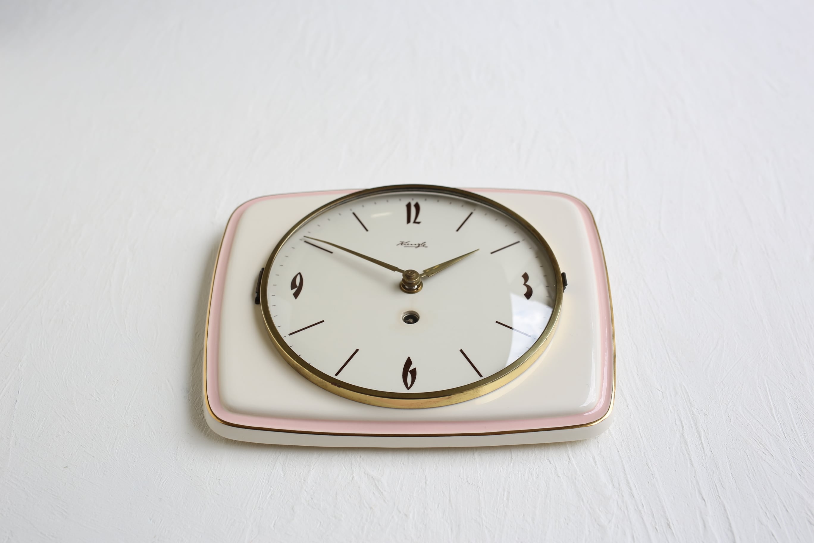 ドイツ アンティーク ヴィンテージ Kienzle 陶器製 壁掛け時計 アイボリー×ピンク×ゴールド(スイープ式クォーツ交換)N-03229