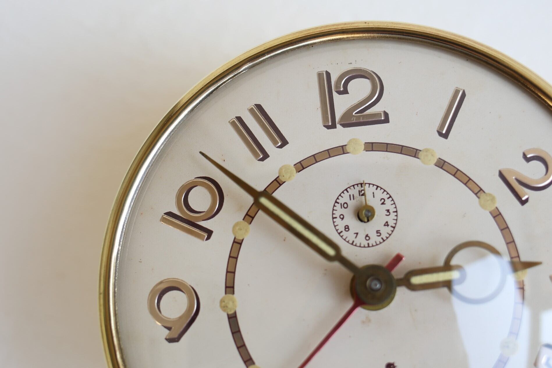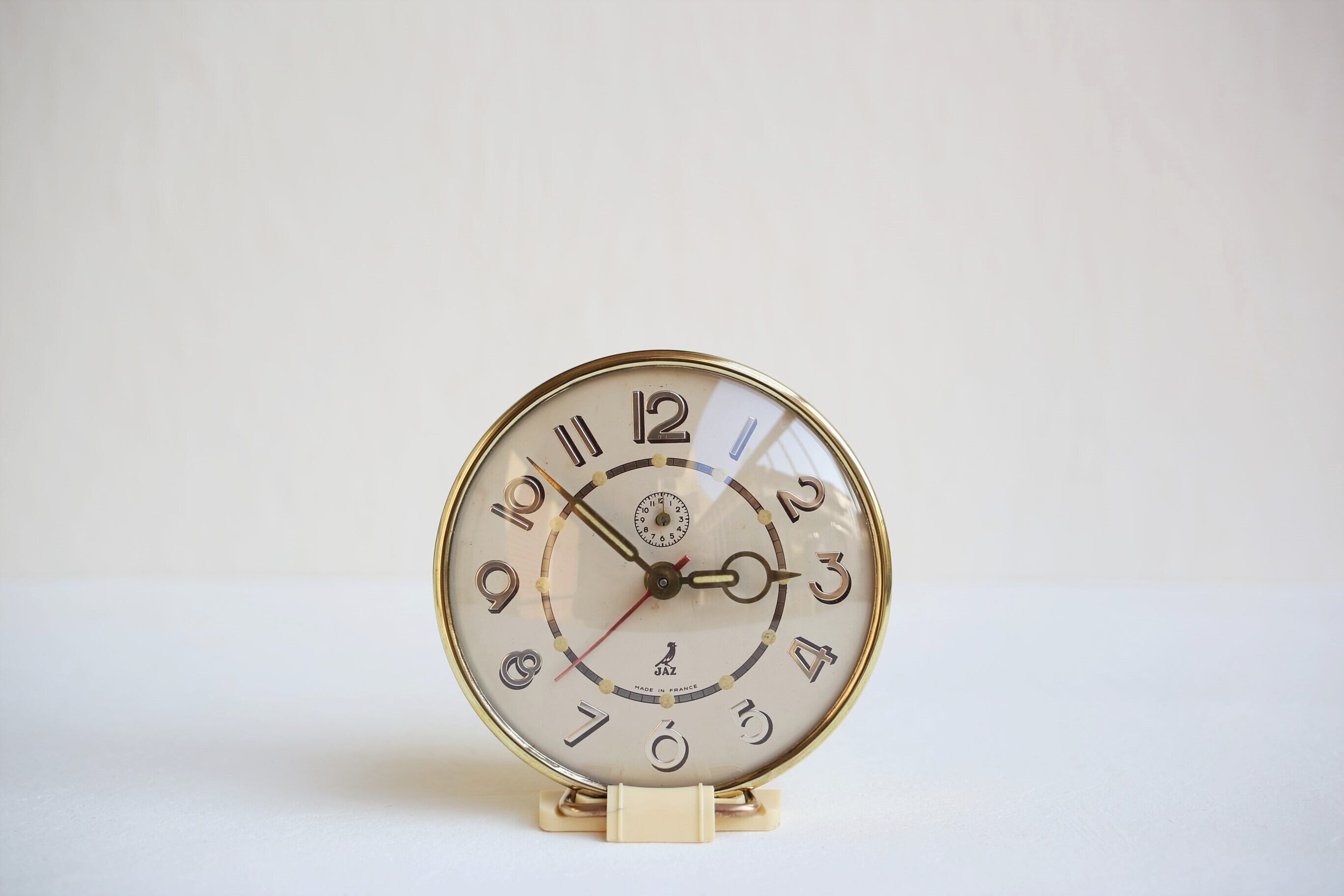 フランス アンティーク ヴィンテージ JAZ 目覚まし時計 『CLERIC』アイボリー×ゴールド 秒針付き N-03242