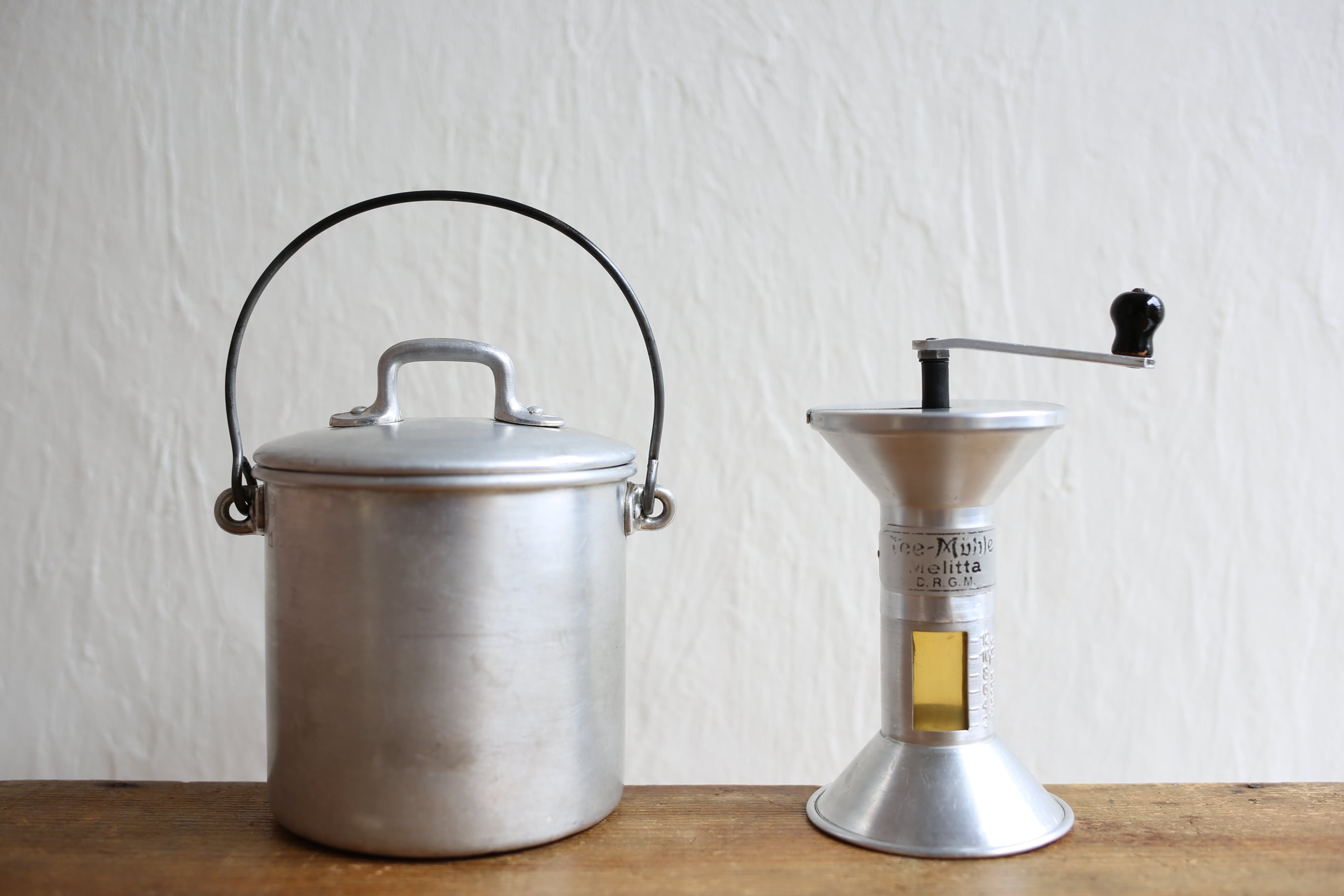 ドイツ アンティーク ヴィンテージ アルミ 蓋と持ち手付き バケツ型ポット N-03262