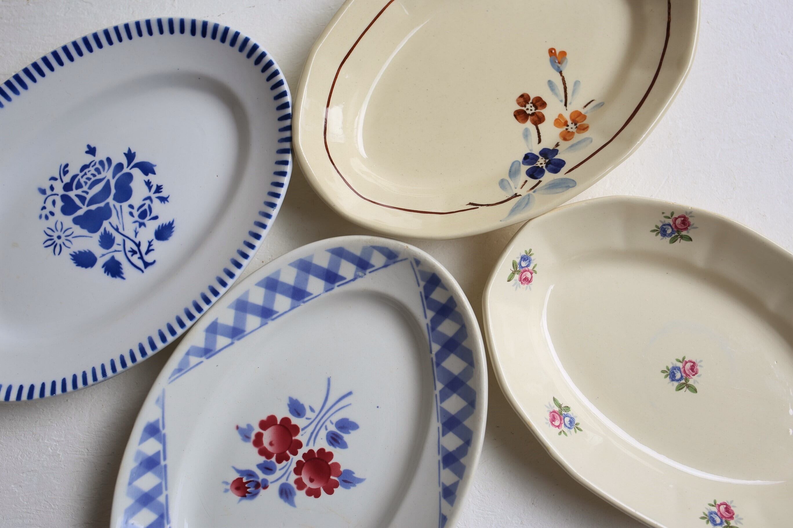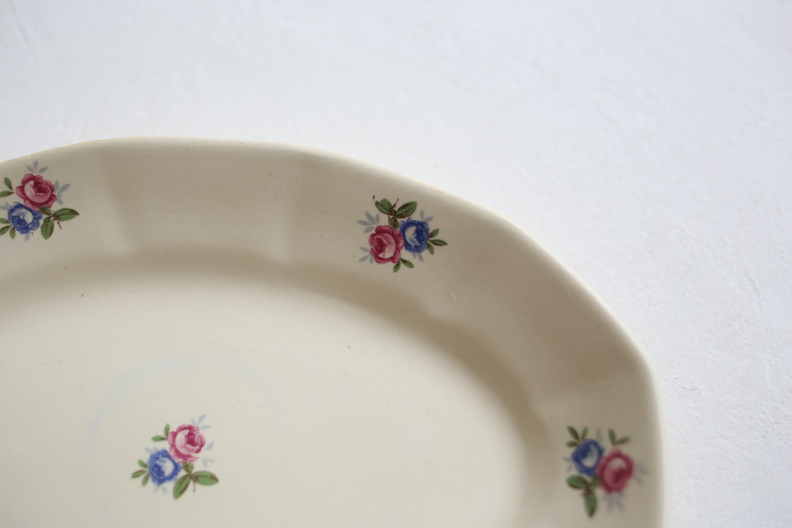 フランス アンティーク ヴィンテージ SARREGUEMINES サルグミンヌ オーバル皿 小さなローズ柄 N-03078b
