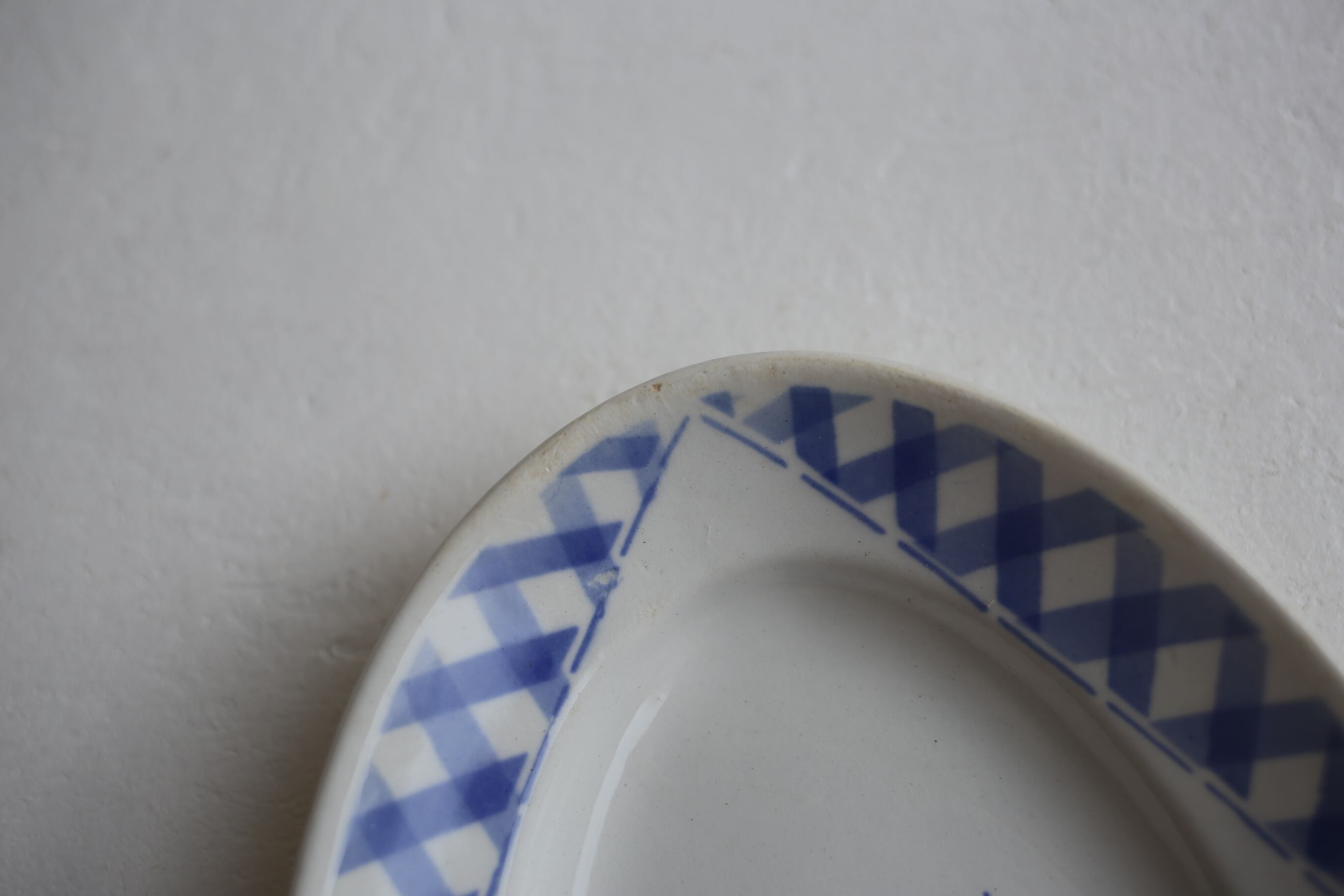フランス アンティーク ヴィンテージ KG LUNÉVILLE リュネヴィル オーバル皿 チェック×花柄 N-02942