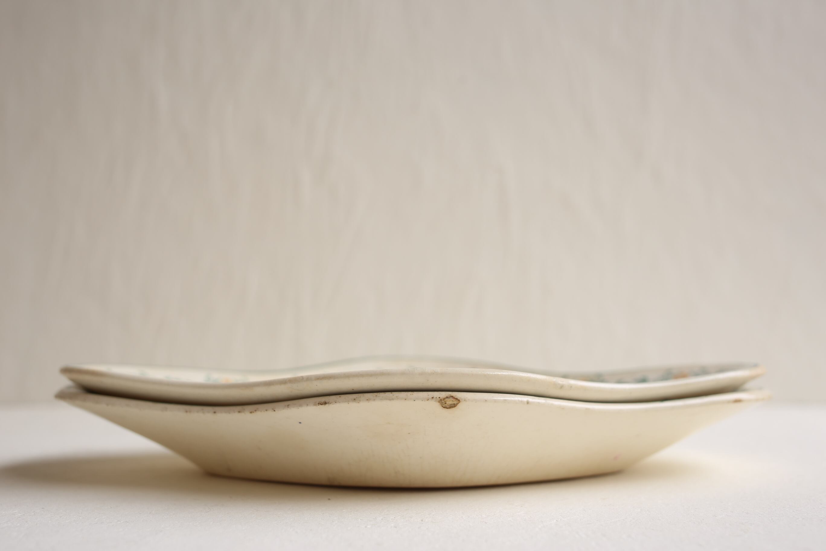 もともと落ち着いた印象のプレートですが、経年の色付きがアンティークプレートならではの魅力を引き立てています。