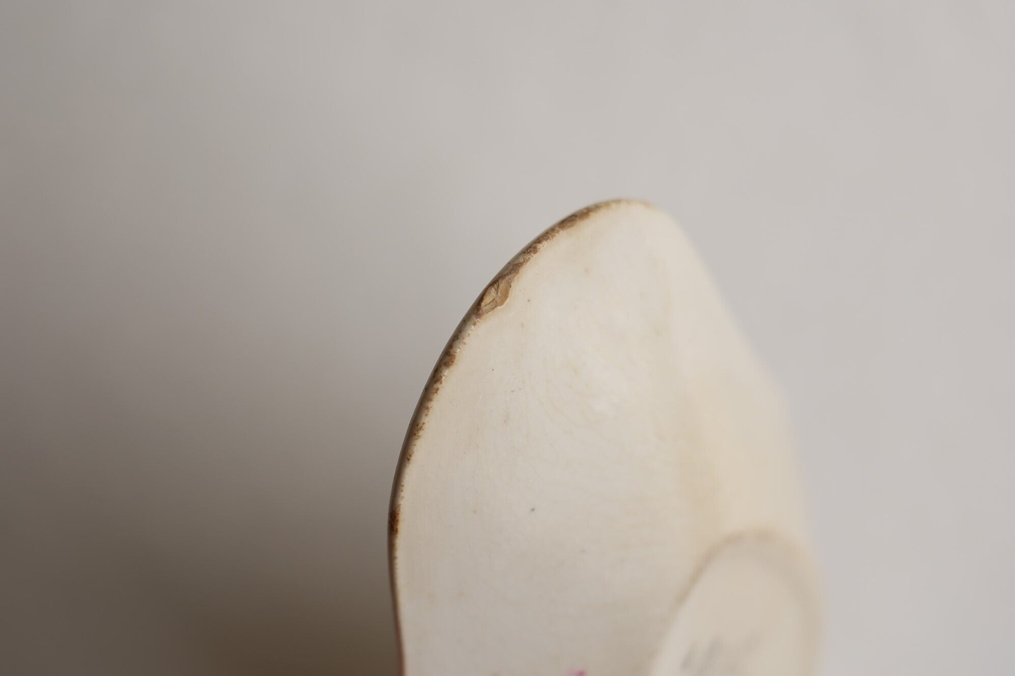 その他に縁の微細なチップやスレ、全体的に薄っすらと入ったシミや製造時に付いた黒点があります。