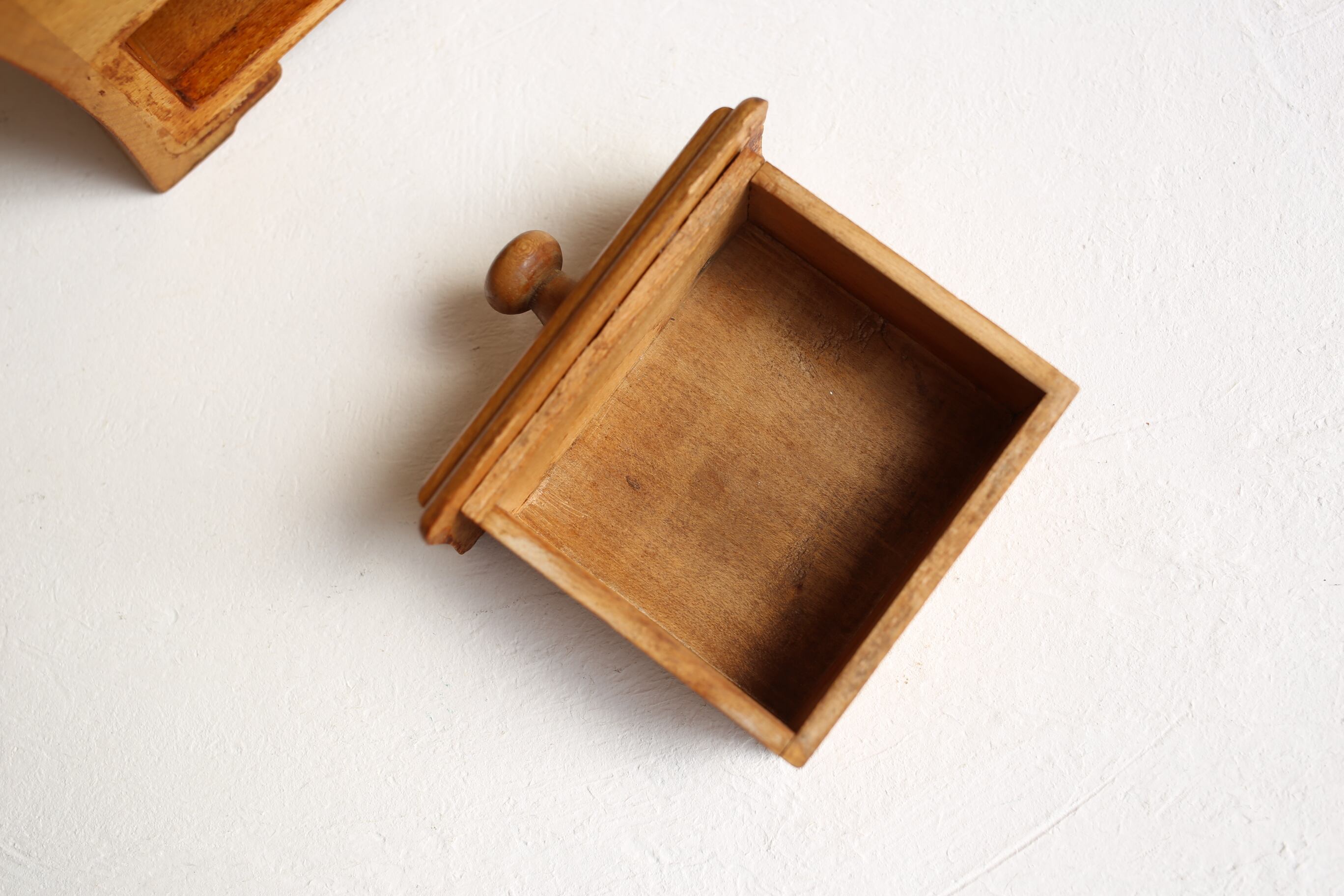「脚」があるデザインはとても珍しいですが、丸みのあるフォルムが優しい印象で木のぬくもりを感じさせてくれる素敵なコーヒーミルです。