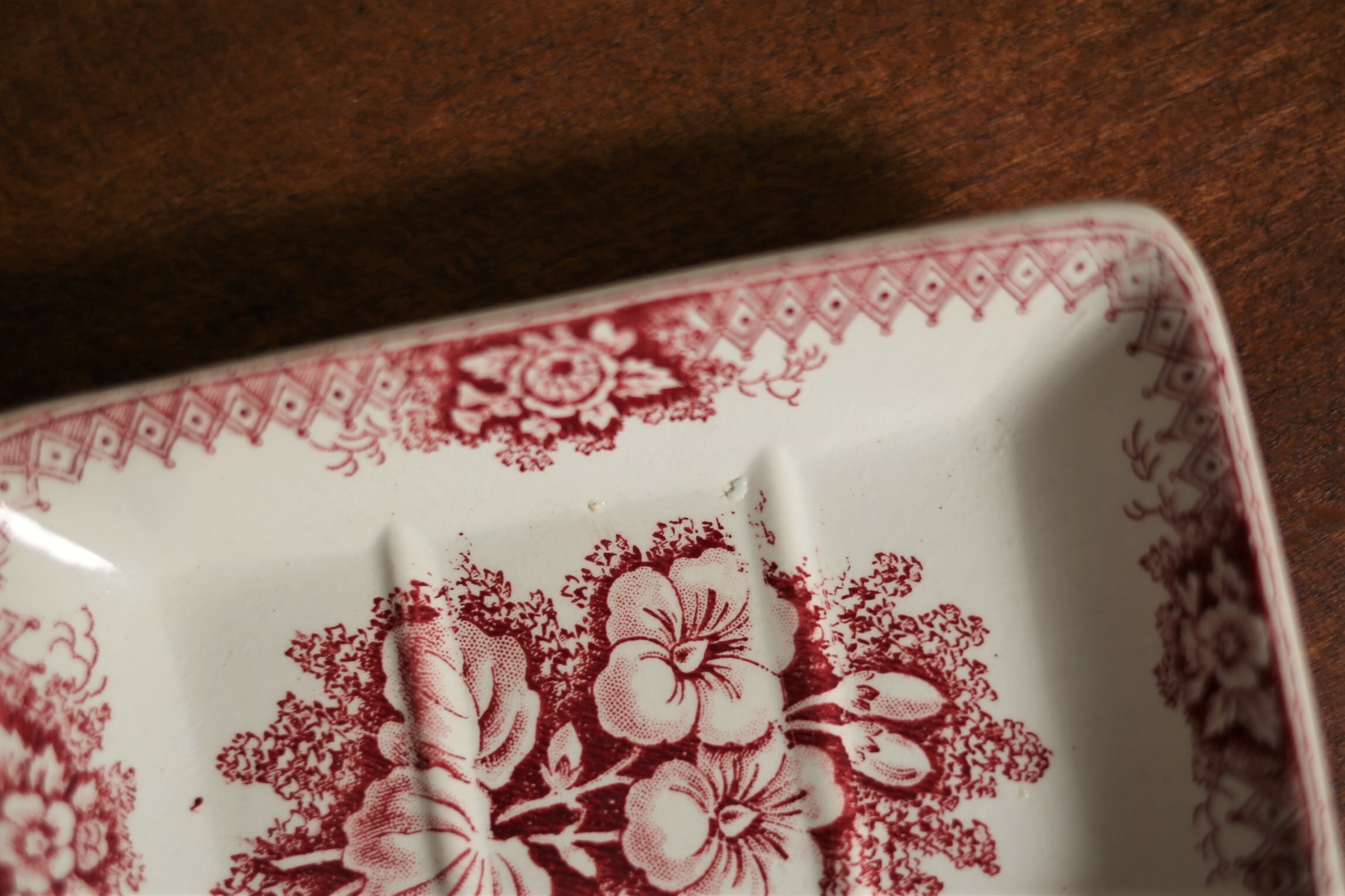 美しいボルドーの絵柄と優しい陶器の質感がとても素敵な雰囲気を漂わせています。