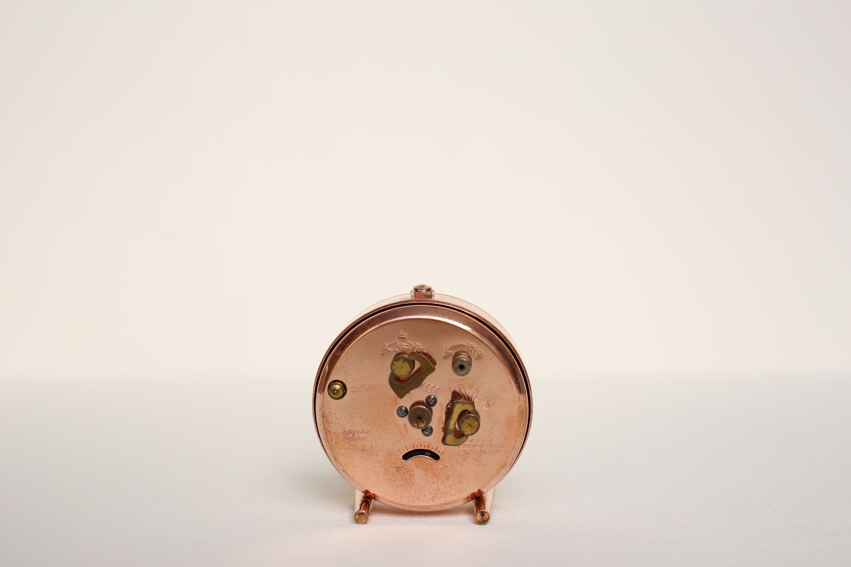 フランス アンティーク ヴィンテージ BAYARD 小さな目覚まし時計 ピンクゴールド ケース付き N-03374