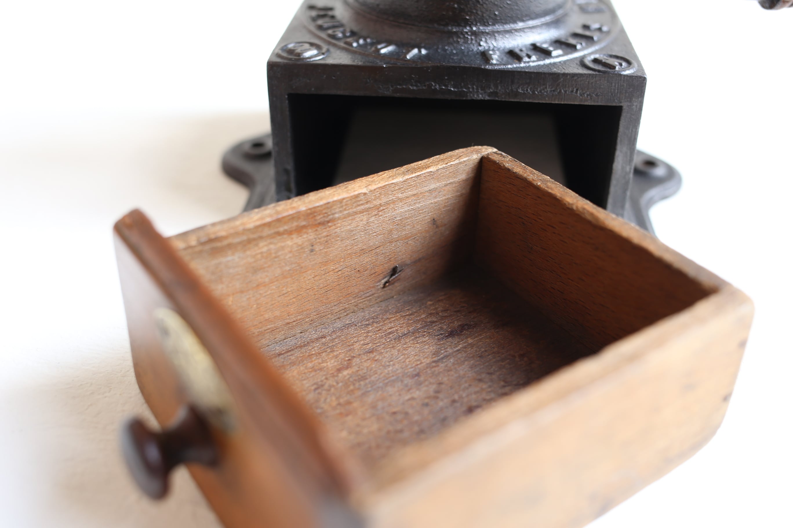 単なるコーヒーミルという粋を越えた造形美、機能美にコレクターが多いこともうなずける希少な逸品です。
