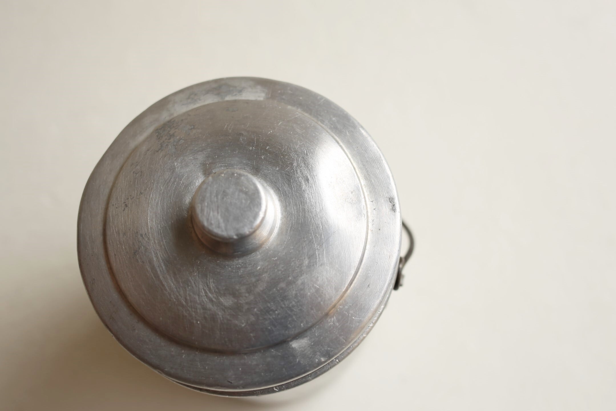 フランスから届いたアルミ製のラウンド型のランチボックスです。