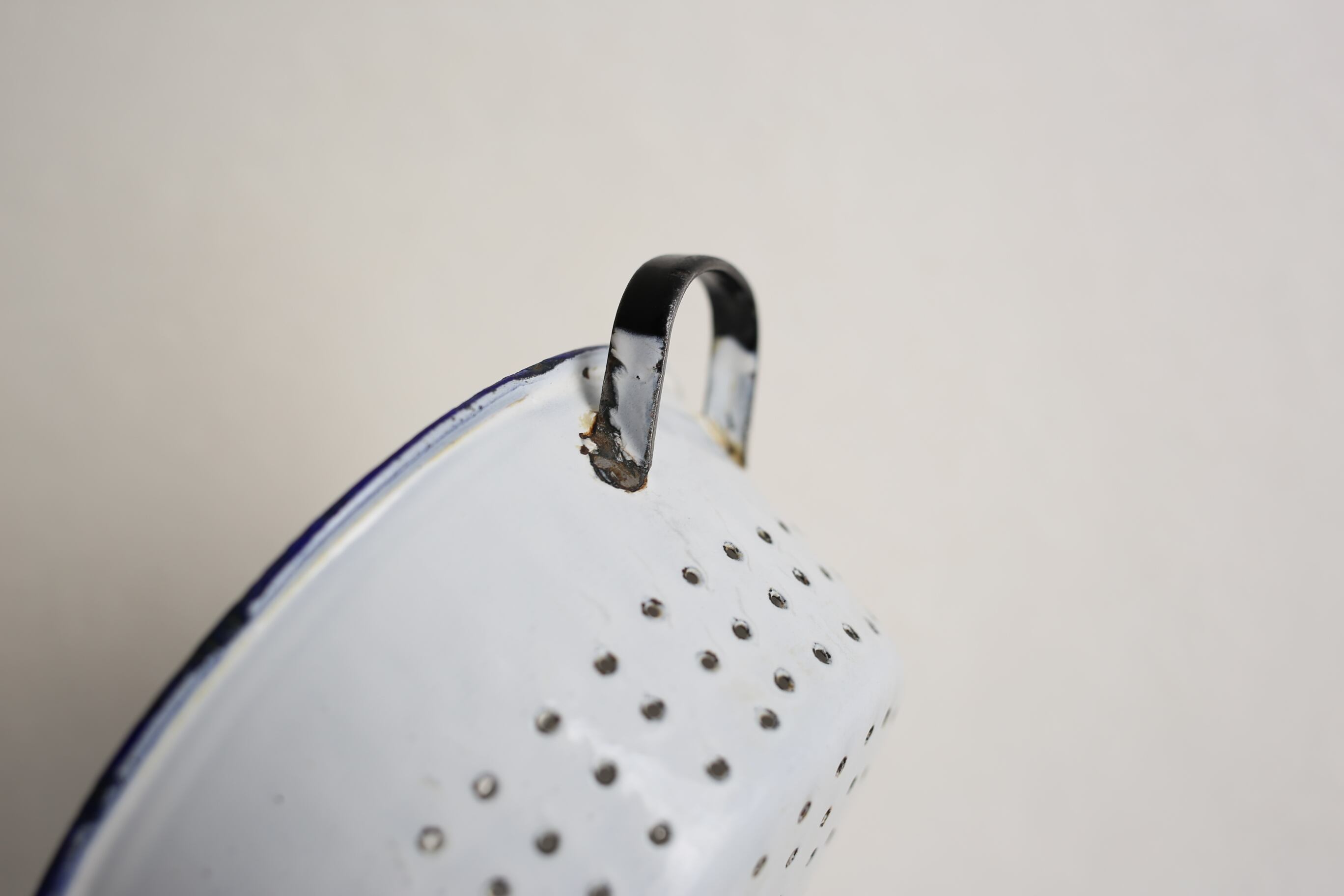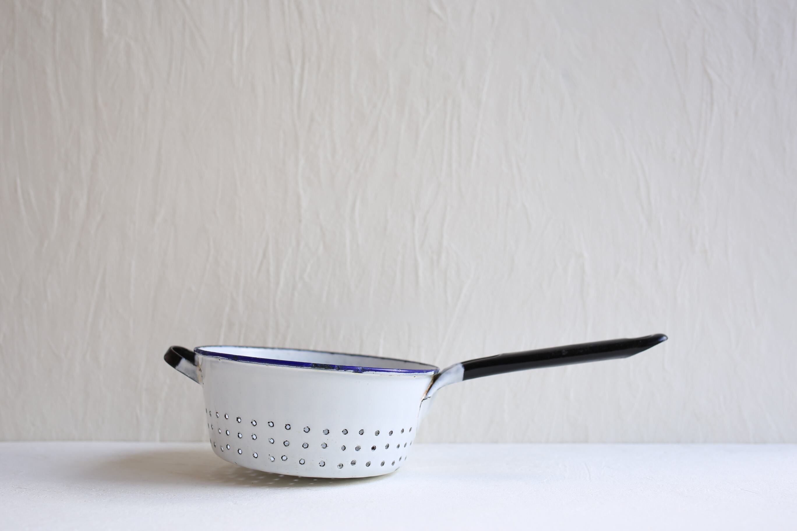 フランス アンティーク ヴィンテージ ホーロー製 片手 水切り コランダー(小) N-03407