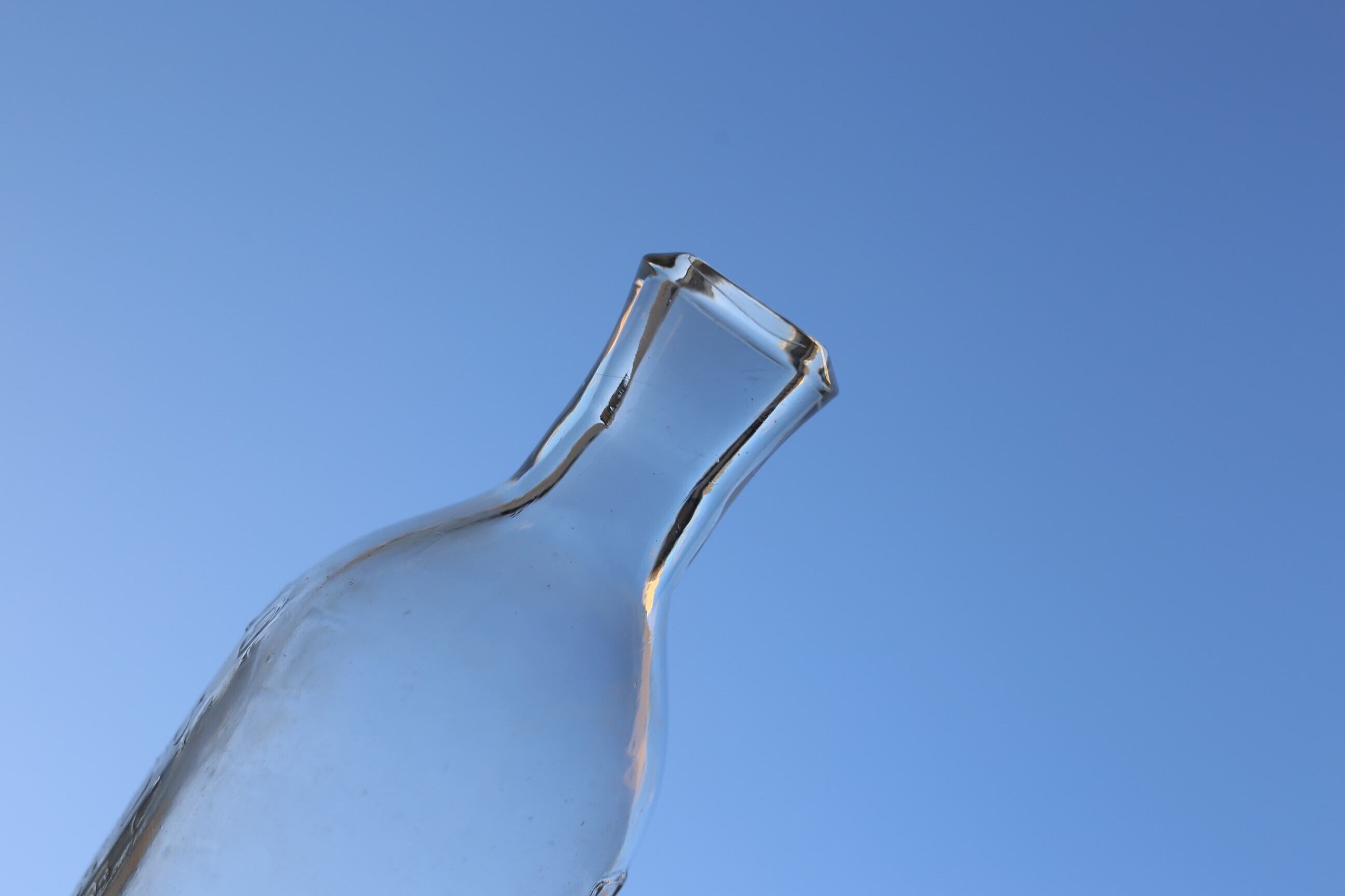 クロスするロゴとメモリのデザインがとても良く、厚手で気泡や揺れのあるガラスが素敵です。