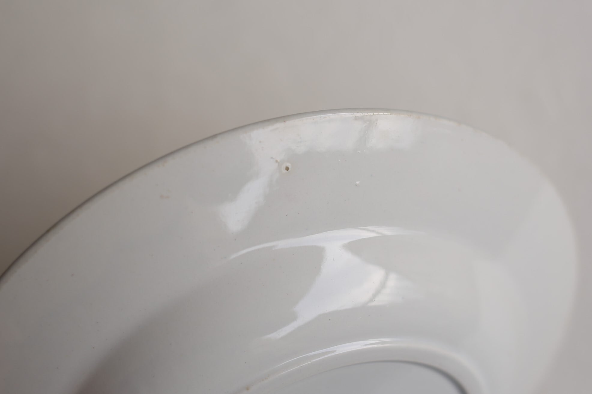 表面に微細なカトラリー跡や薄い黒いスジ、縁にわずかなスレとリムの裏側にわずかなシミがありますが、それ以外は転写ズレなどの製造時のムラ程度で、釉薬の艶も残り全体的には良い状態です。