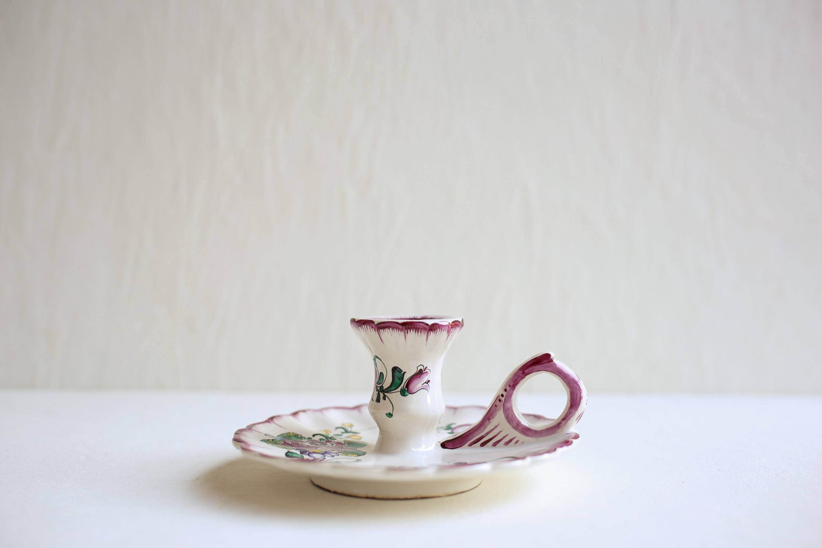 フランス アンティーク ヴィンテージ 陶器 キャンドルスタンド キャンドルホルダー(ハンドペイント) N-03462