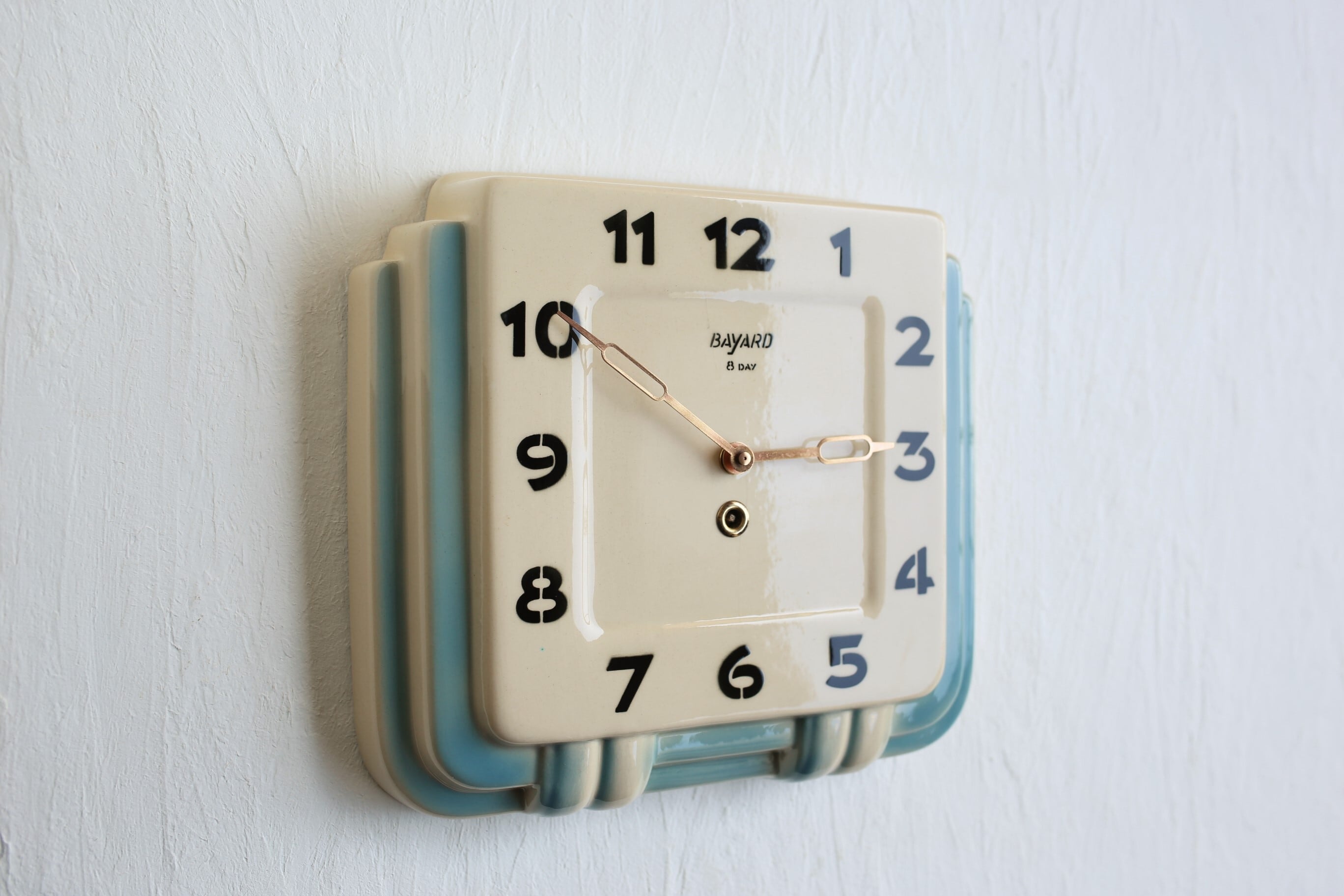 フランス アンティーク ヴィンテージ BAYARD 陶器製 壁掛け時計 スクエア型 (スイープ式クォーツ交換済) N-03468