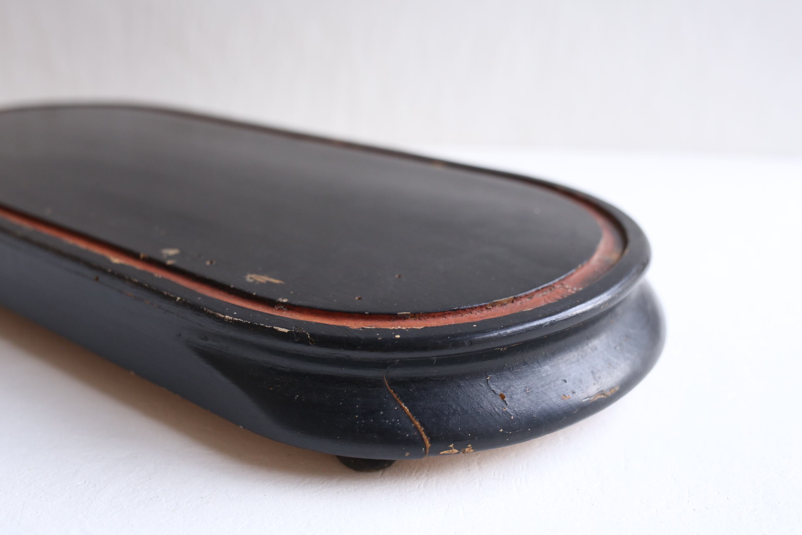 フランスから届いた黒塗りの脚付き木製ディスプレイ台です。
