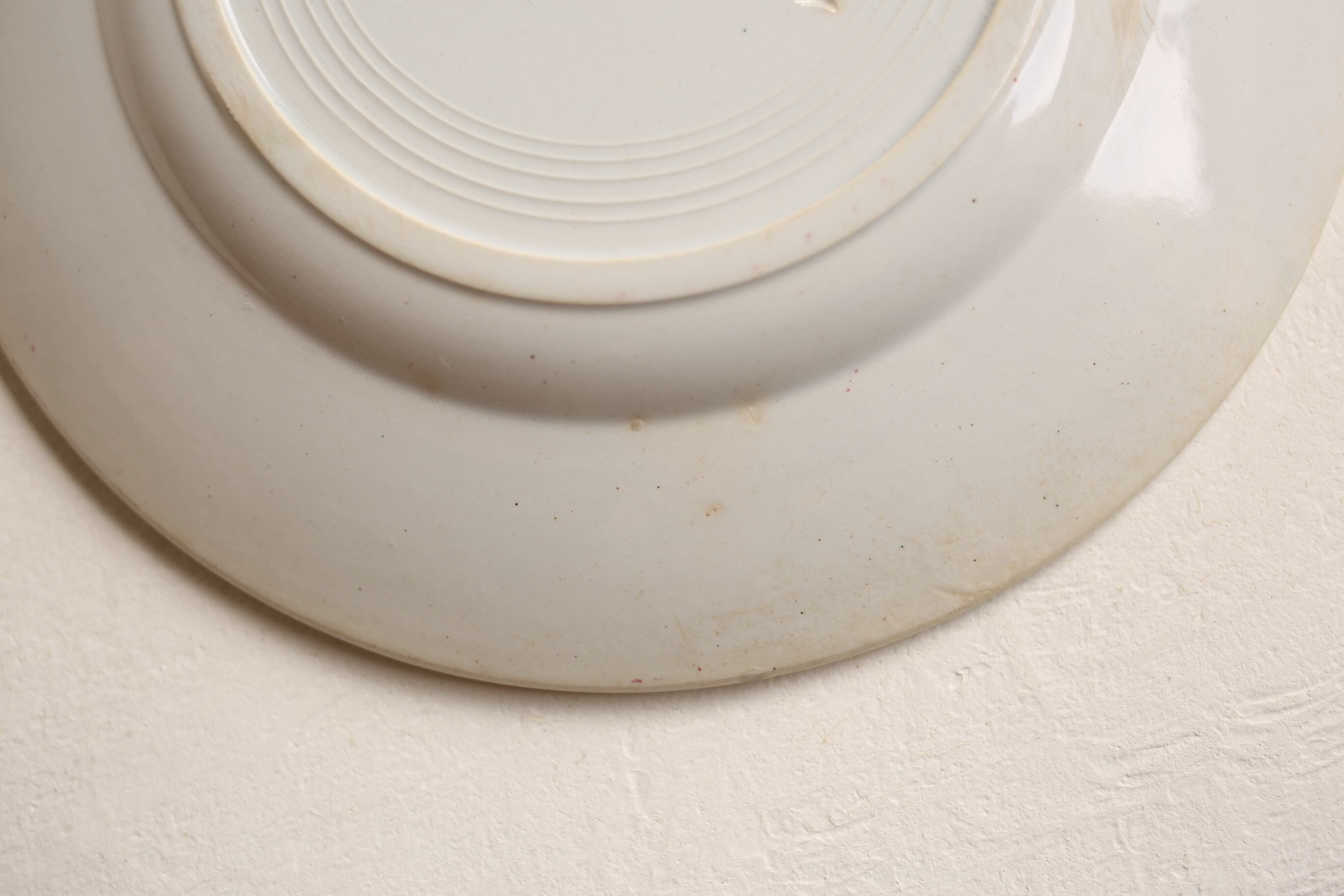 微細なカトラリー跡や所々にシミ、縁にスレやチップなどはありますが、それ以外は製造時のムラ程度で目立つカケやヒビなどのダメージはなく良い状態です。