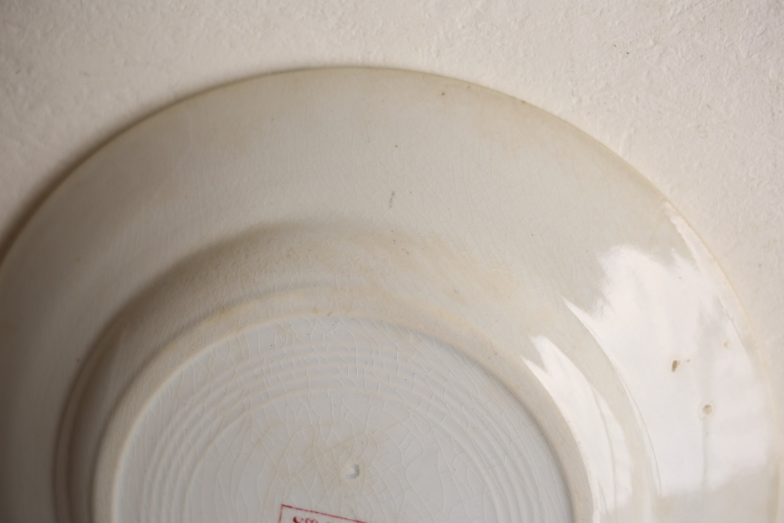 微細なカトラリー跡や所々にシミ、縁にスレなどはありますが、それ以外は製造時のムラ程度で目立つカケやヒビなどのダメージはなく良い状態です。