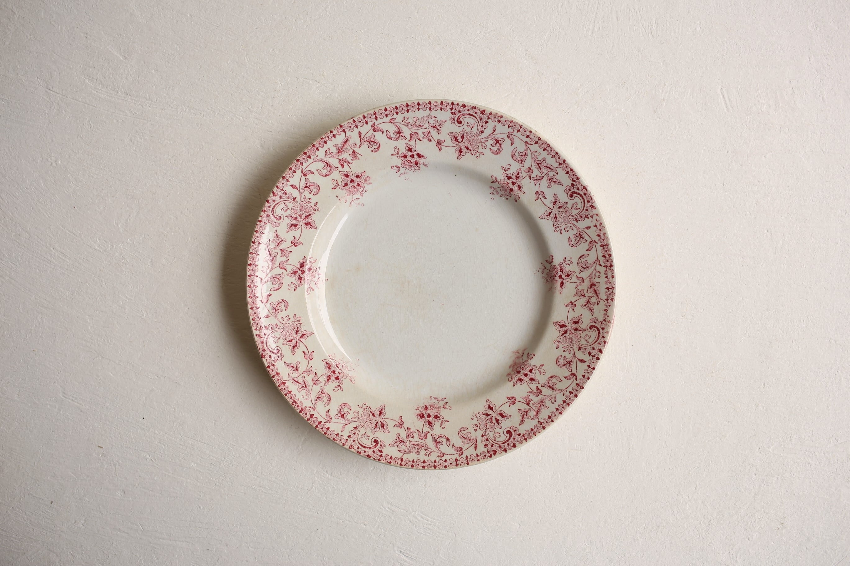 フランスから届いた赤系のステンシルが美しいプレートです。