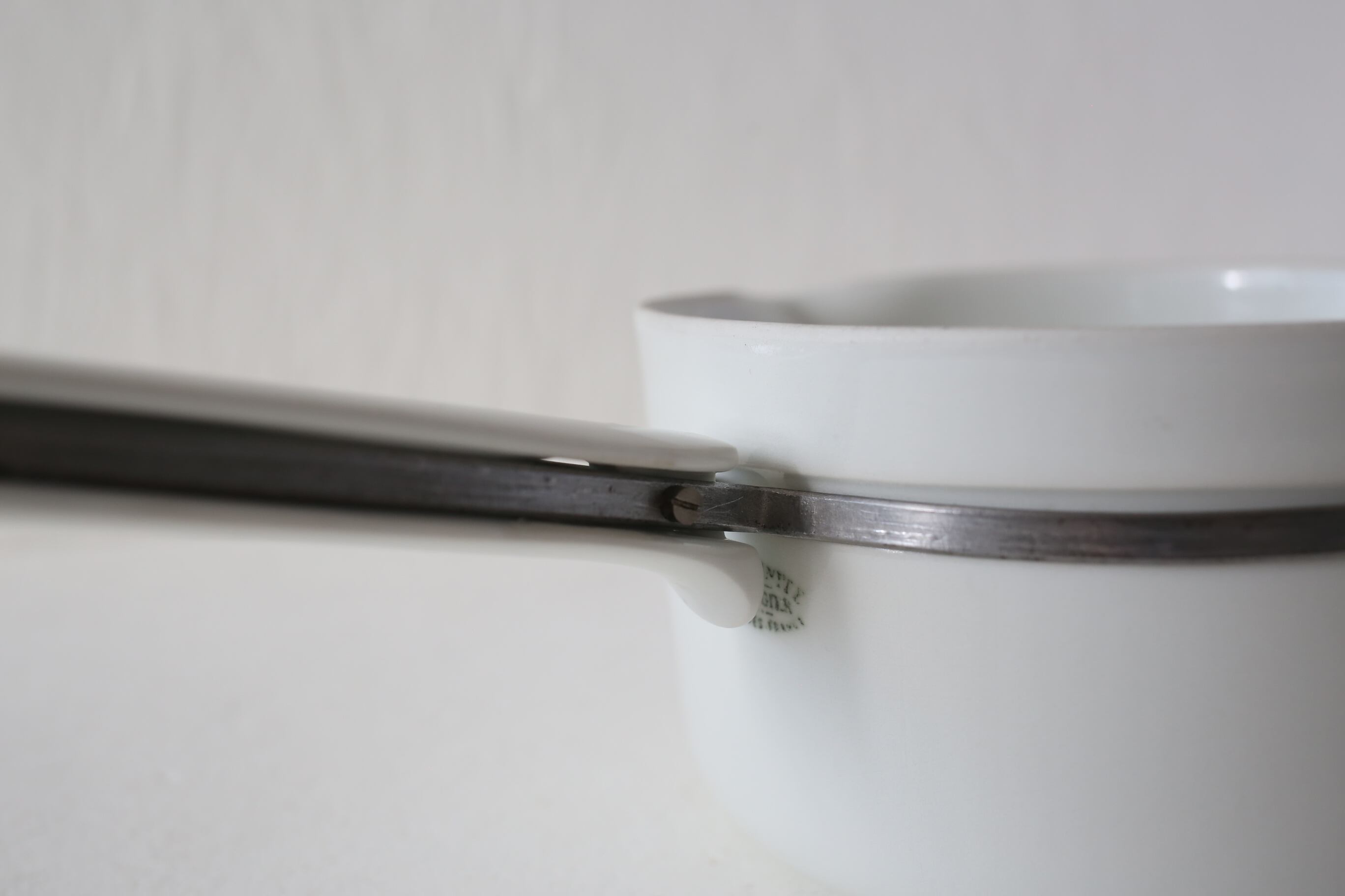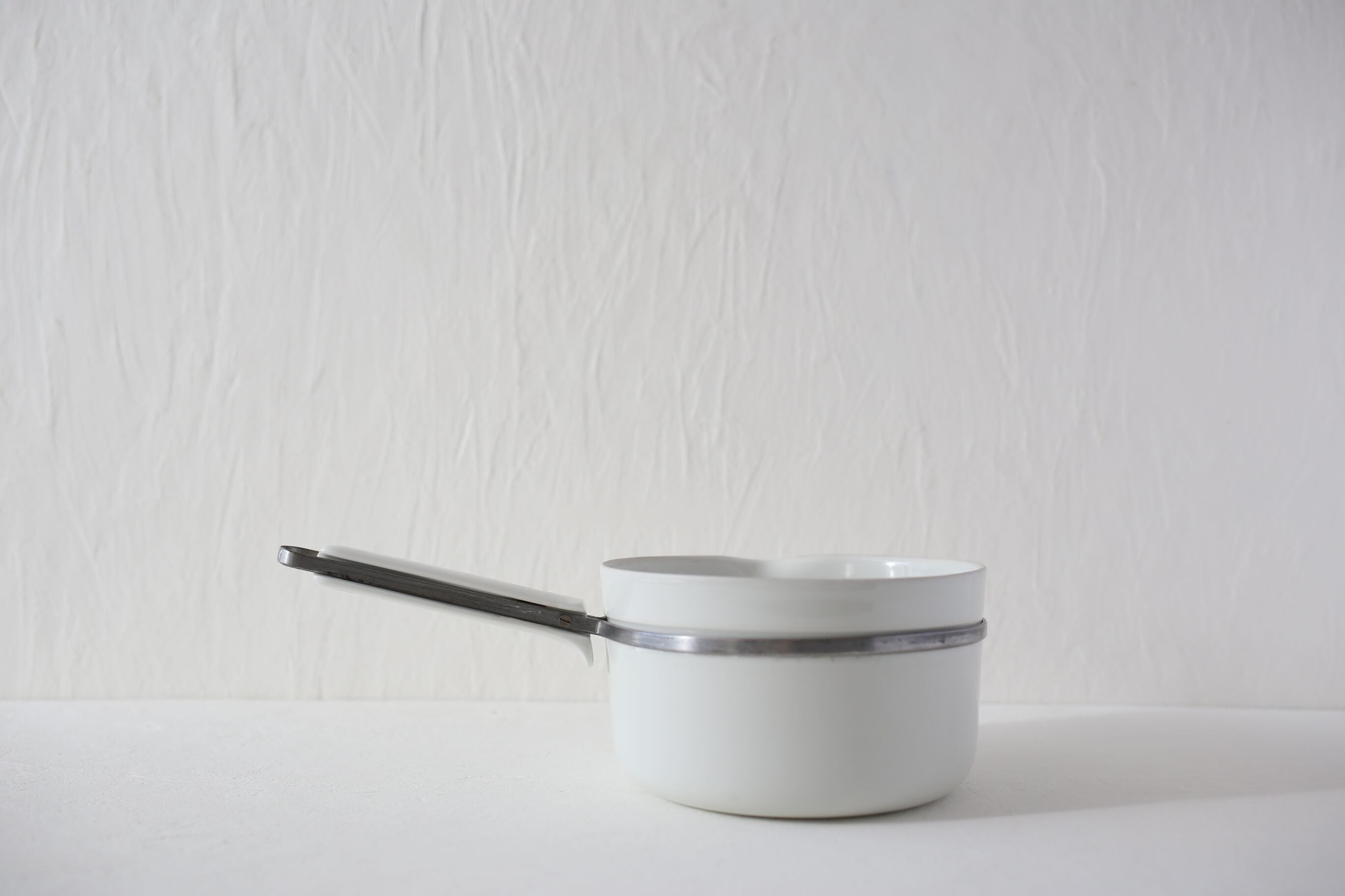 直火にかけられる磁器として1900年前半の開発されましたが、シンプルなデザインと白磁がとても美しい鍋です。