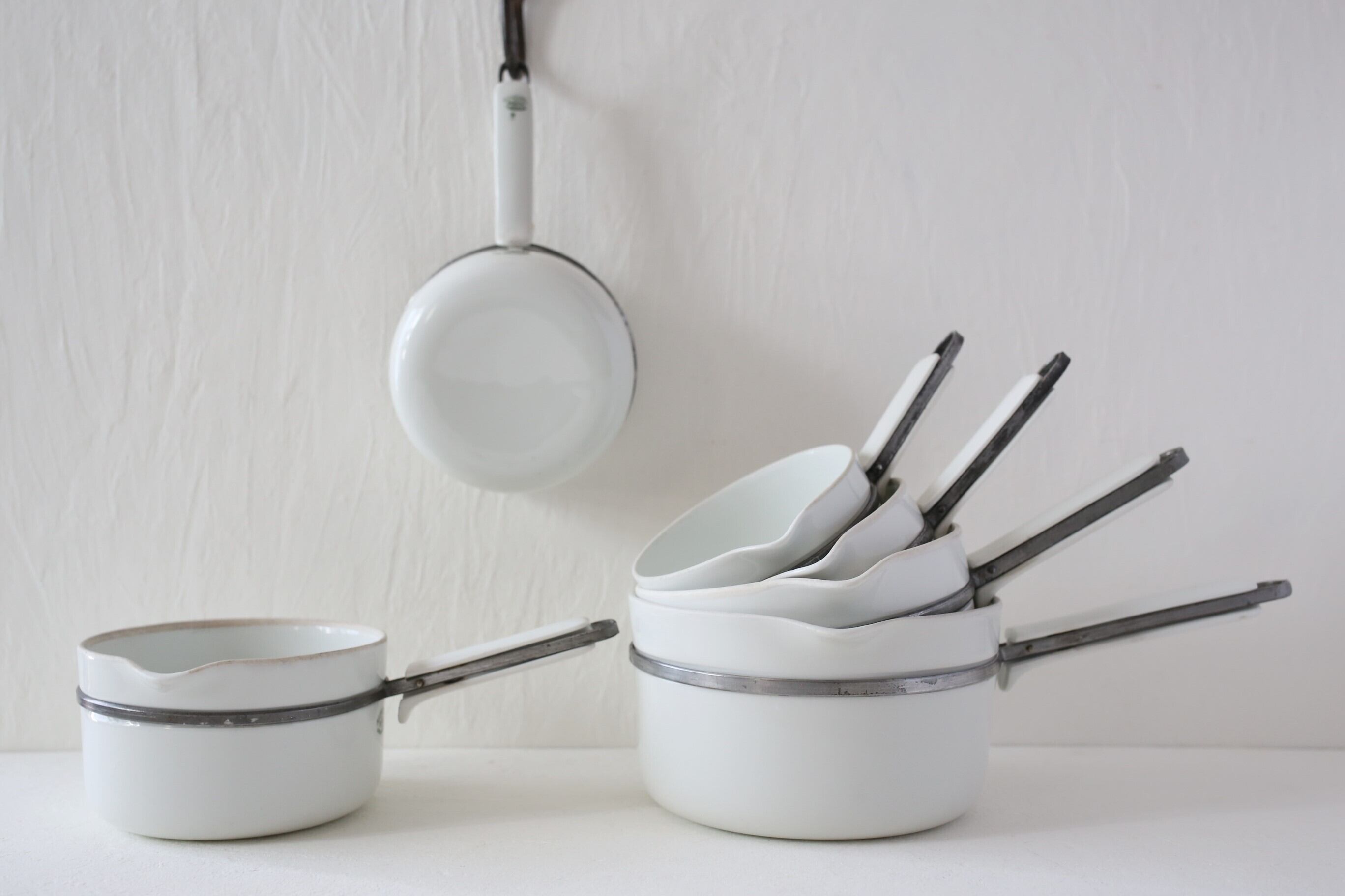 直火にかけられる磁器として1900年前半の開発されましたが、シンプルなデザインと白磁がとても美しい鍋です。