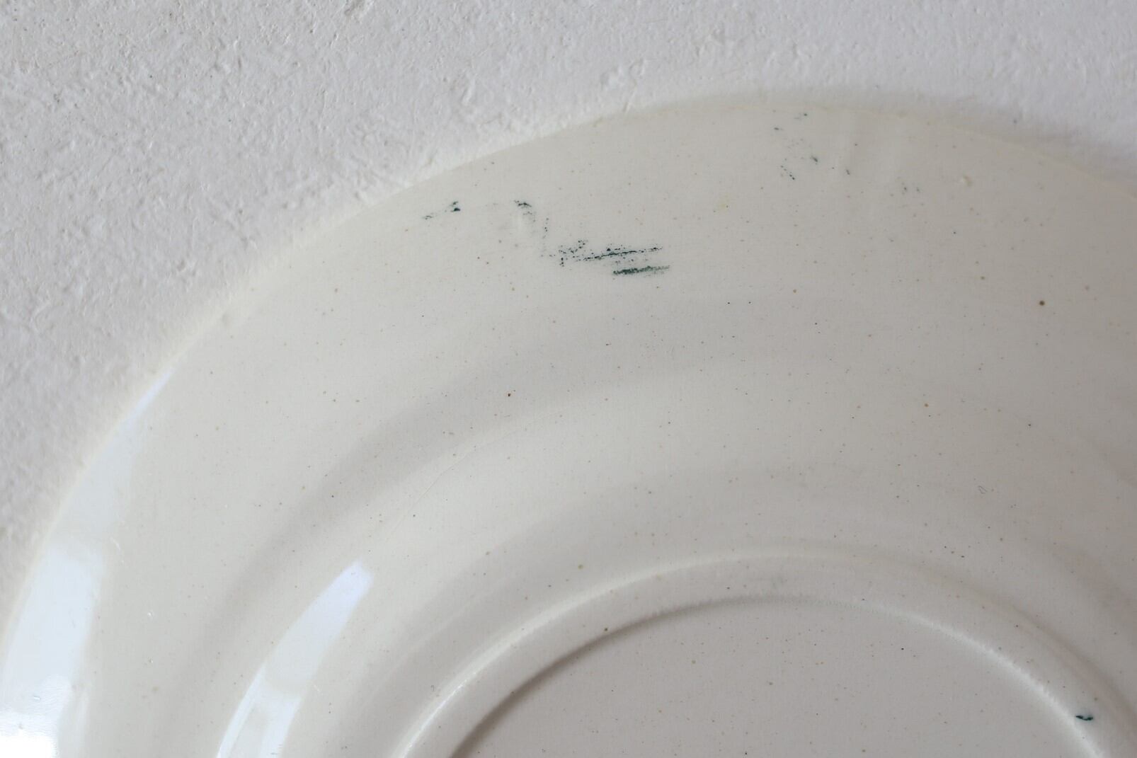 その他は微細なカトラリー跡や縁のスレ、色ムラや黒点などの製造時のムラ程度で、全体的には釉薬の艶も残り良い状態です。