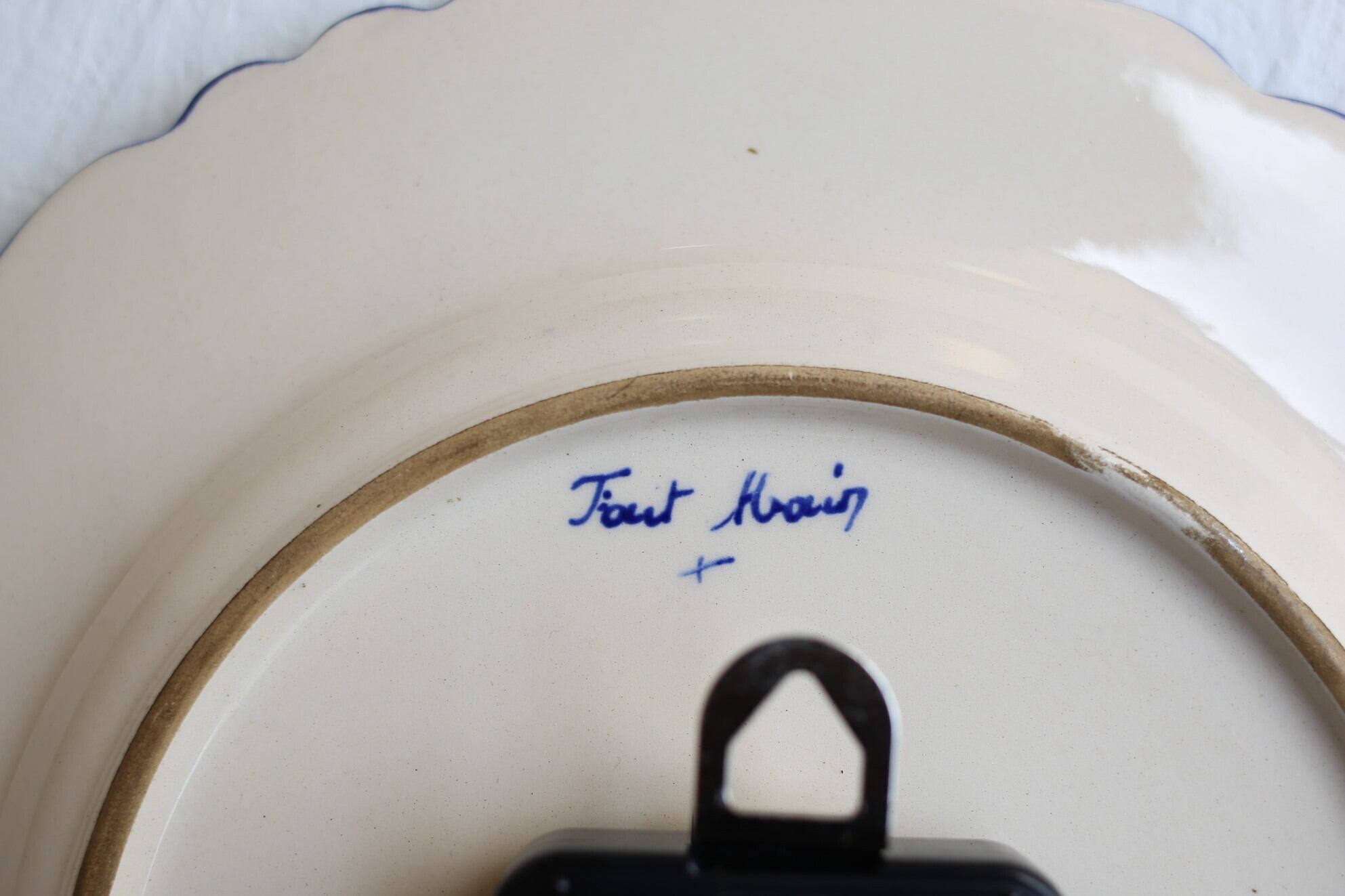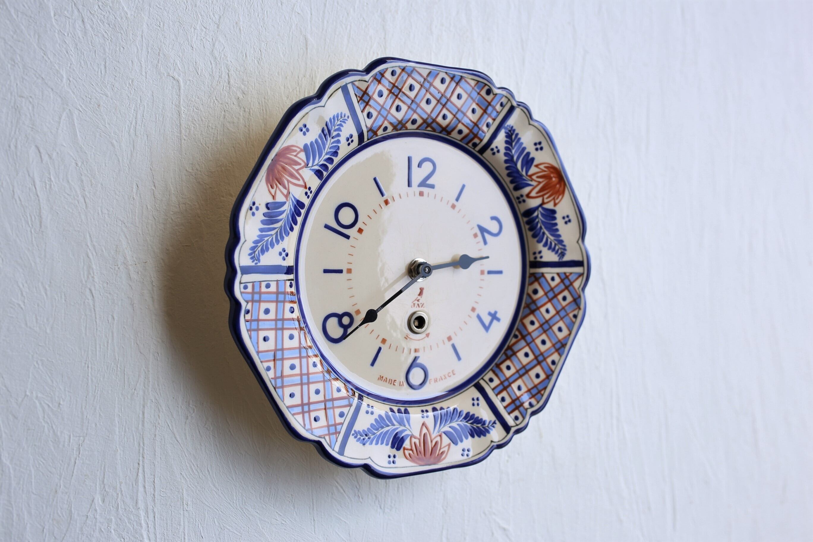 フランス アンティーク ヴィンテージ JAZ 花リム 陶器プレート 壁掛け時計(電池式クォーツ交換済) N-03595