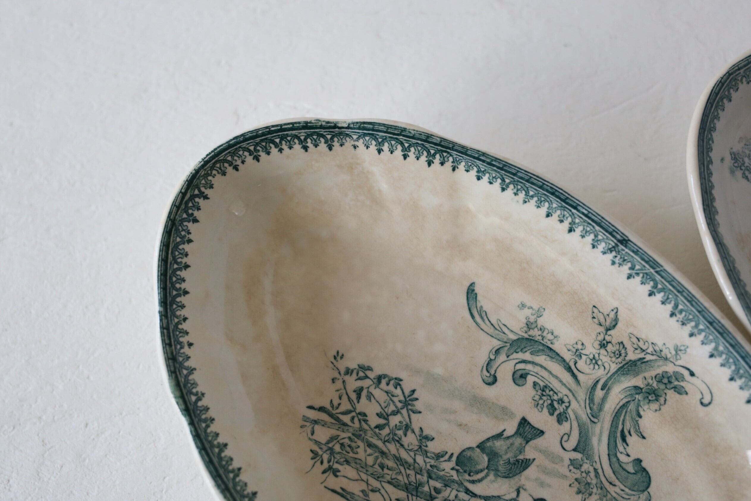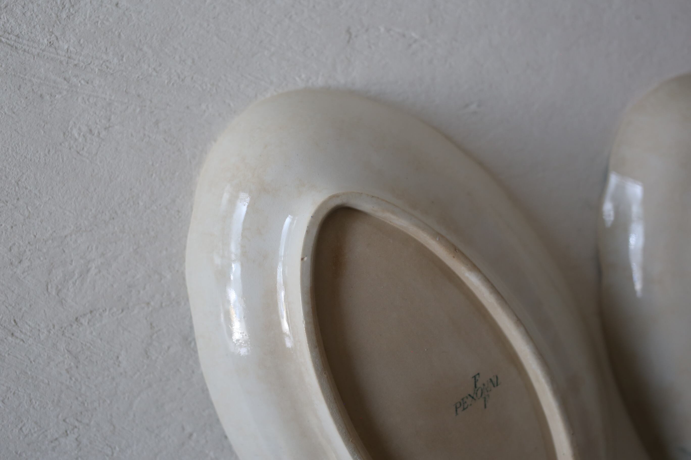 フランス アンティーク F.F.PEXONNE(ペクソンヌ)窯 『ROCAILLE』ラヴィエ オーバル N-03587&N-03588