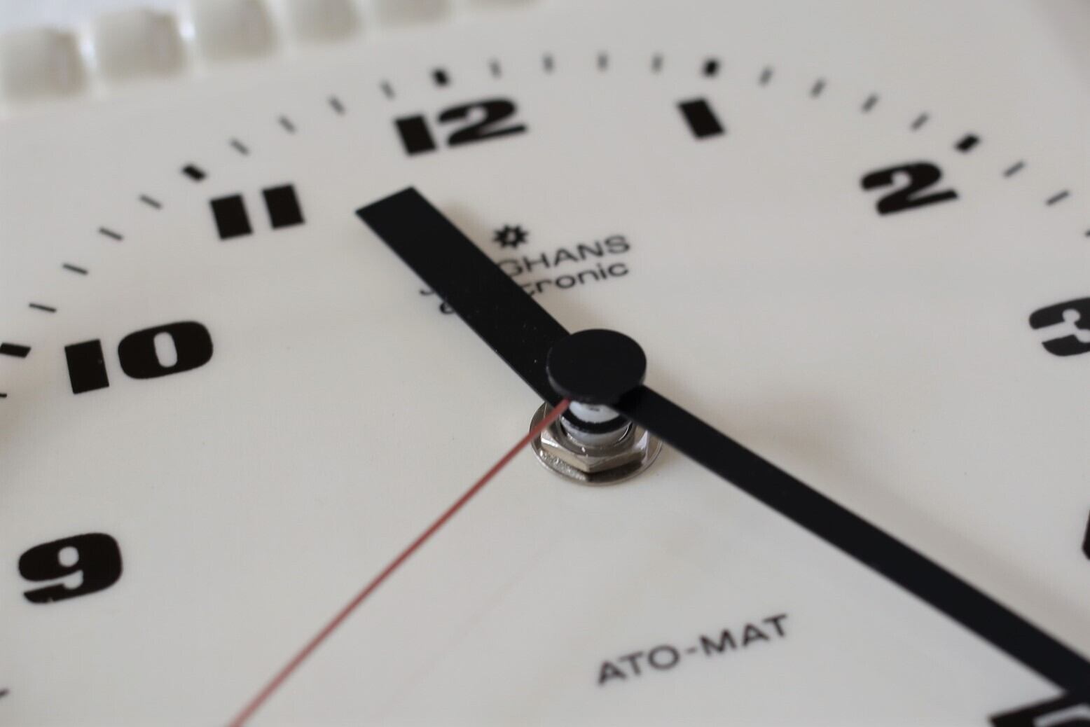スイープ式クォーツ交換済: ドイツ アンティーク ヴィンテージ Junghans 壁掛け時計 クリーム×シルバーフレームN-03600