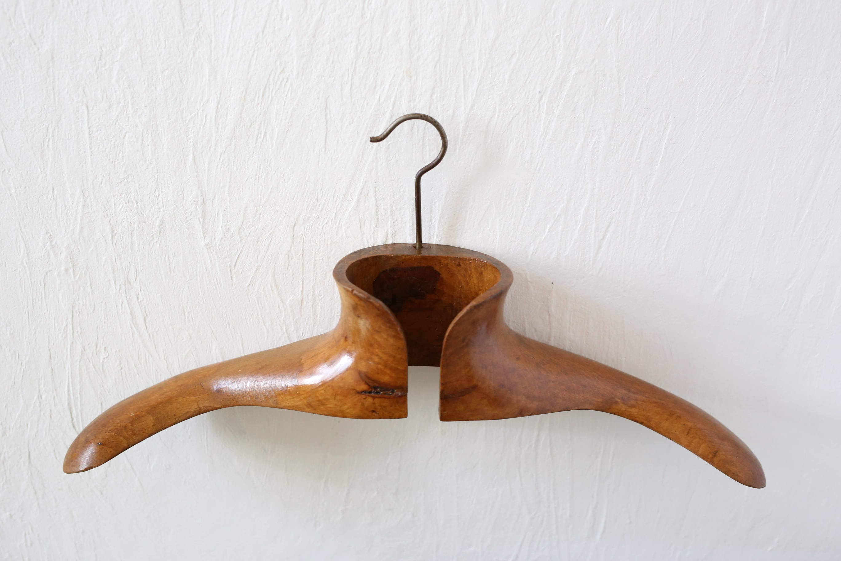 一本の無垢の木材から削りだされ丁寧な仕事で美しいフォルムに仕上げられてたハンガーです。