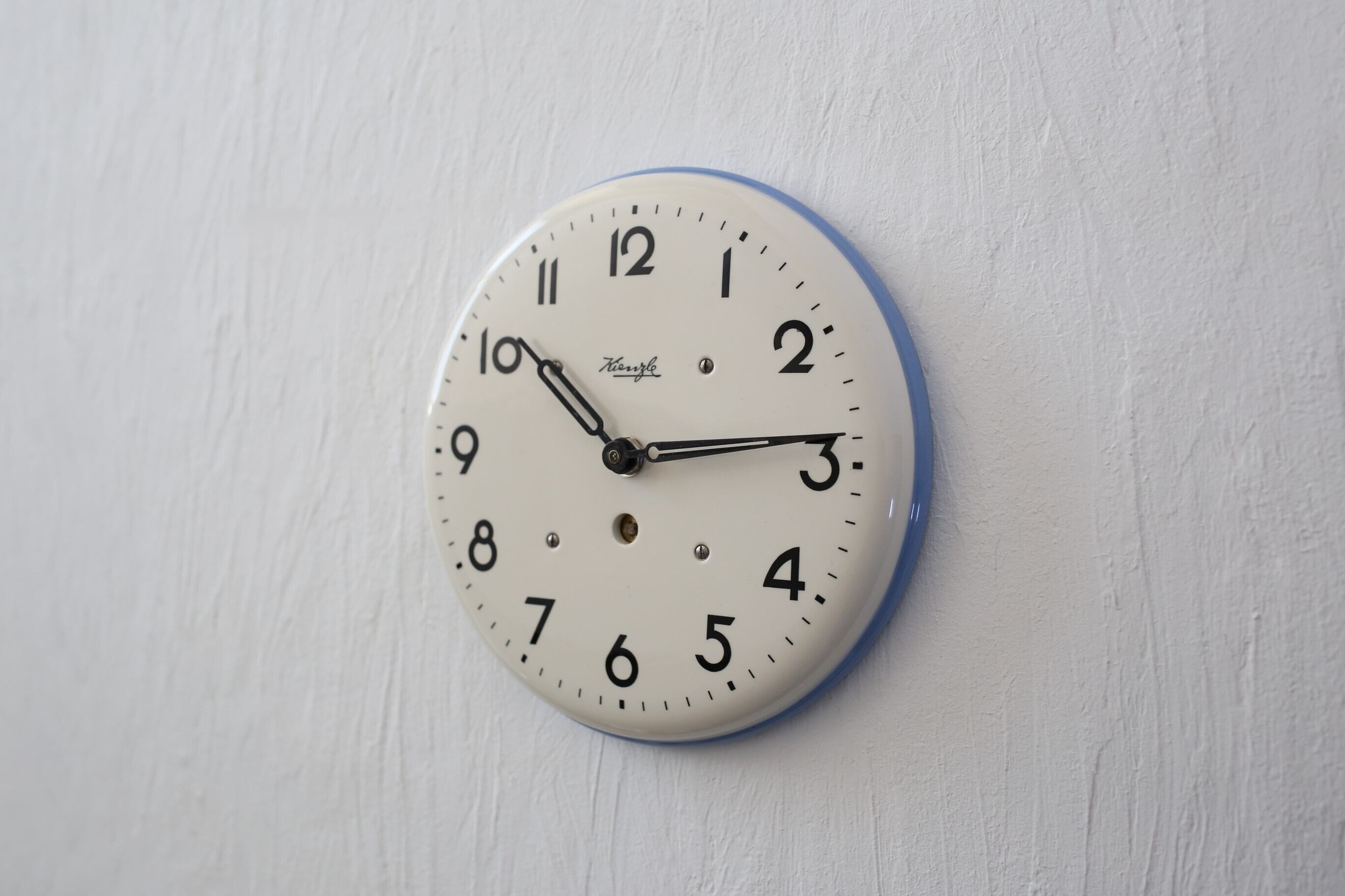 ドイツ Kienzlel社の陶器製の丸型の壁掛け時計です。