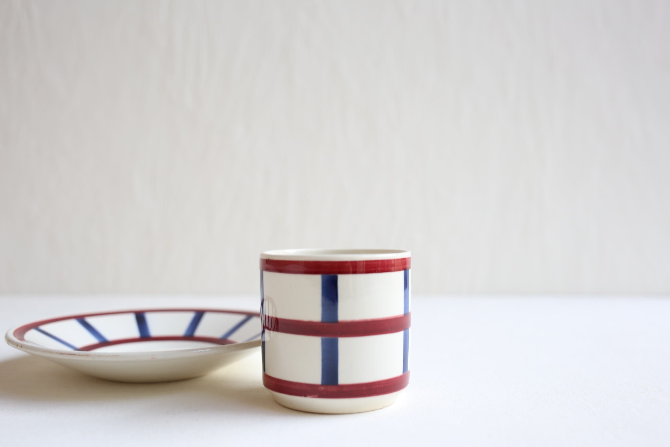 フランス アンティーク ヴィンテージ クレイユモントロー 『Béarn』バスク柄 カップ&ソーサー N-03618b