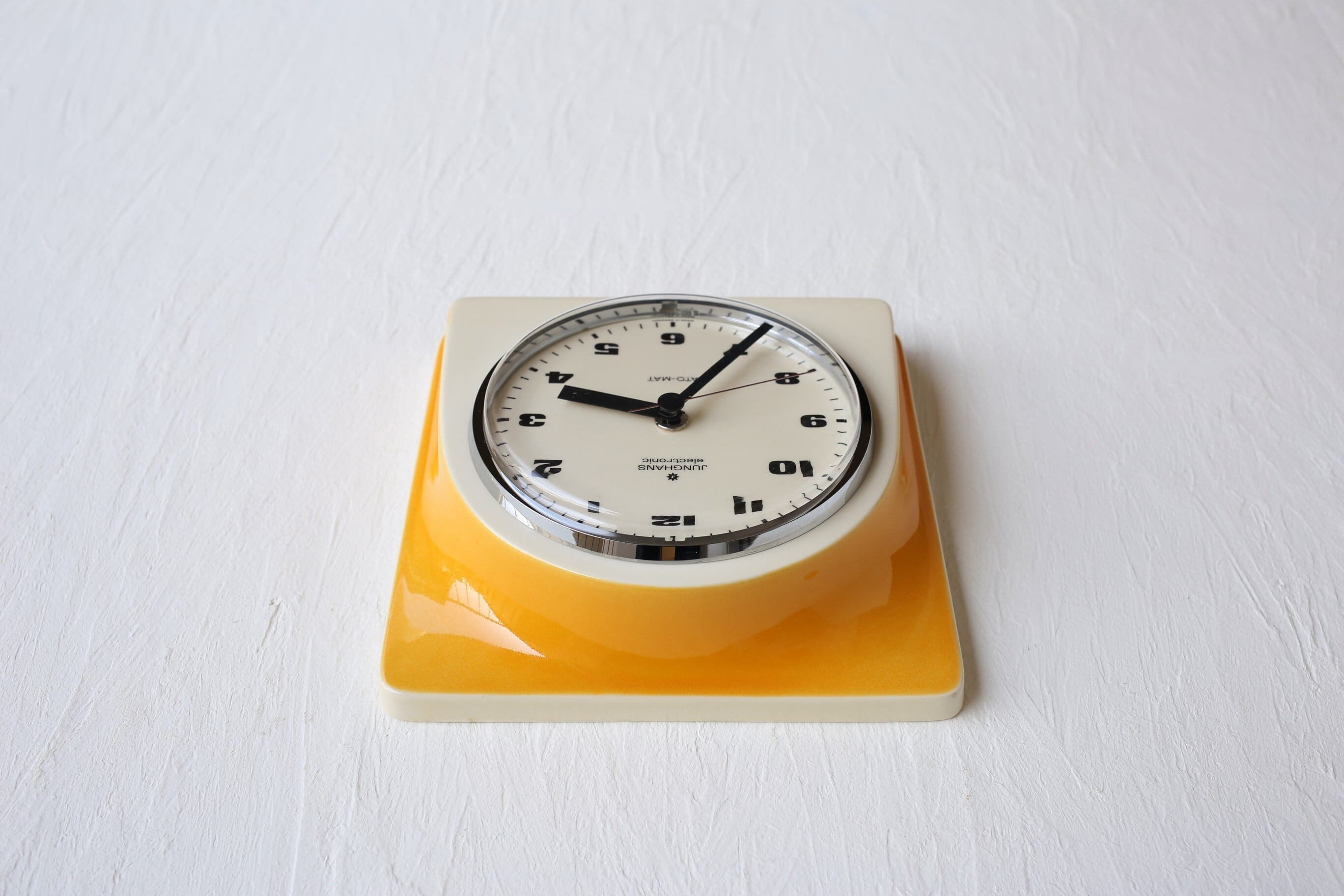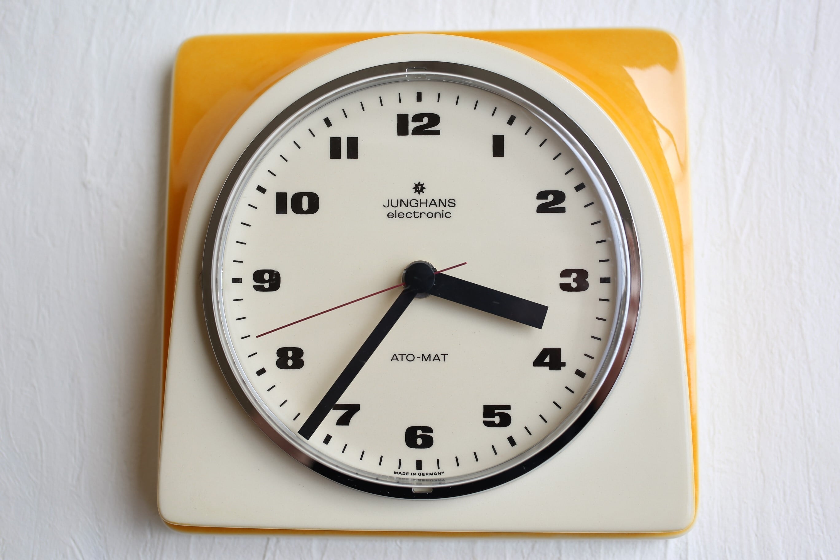 ドイツ アンティーク ヴィンテージ Junghans 陶器 壁掛け時計 オレンジ×クリーム (単2電池)N-03685