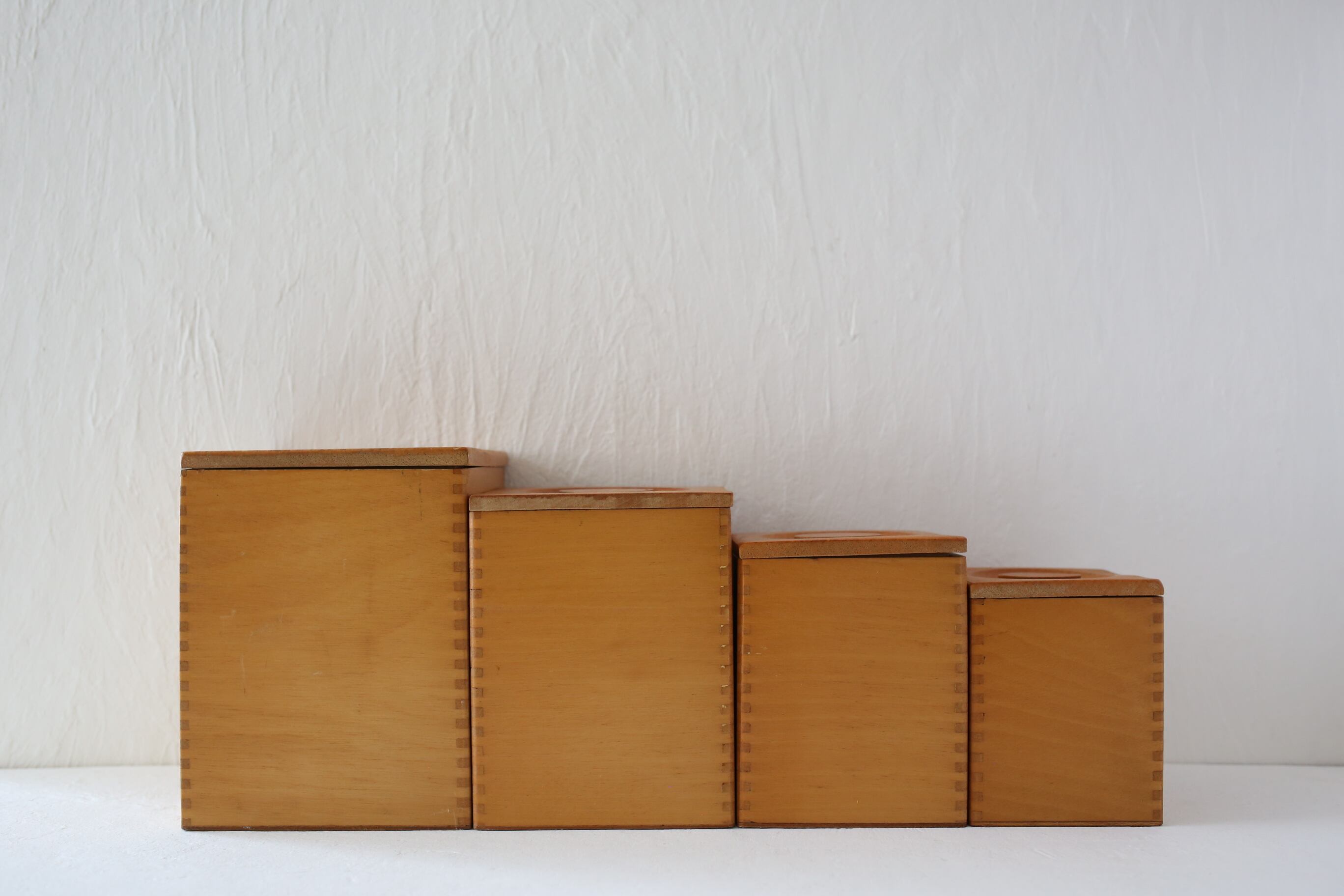 アルミ製やホーロー製、陶器製のキャニスターに比べると木製の状態の良いものにはなかなか出会えませんレアなアイテムです。