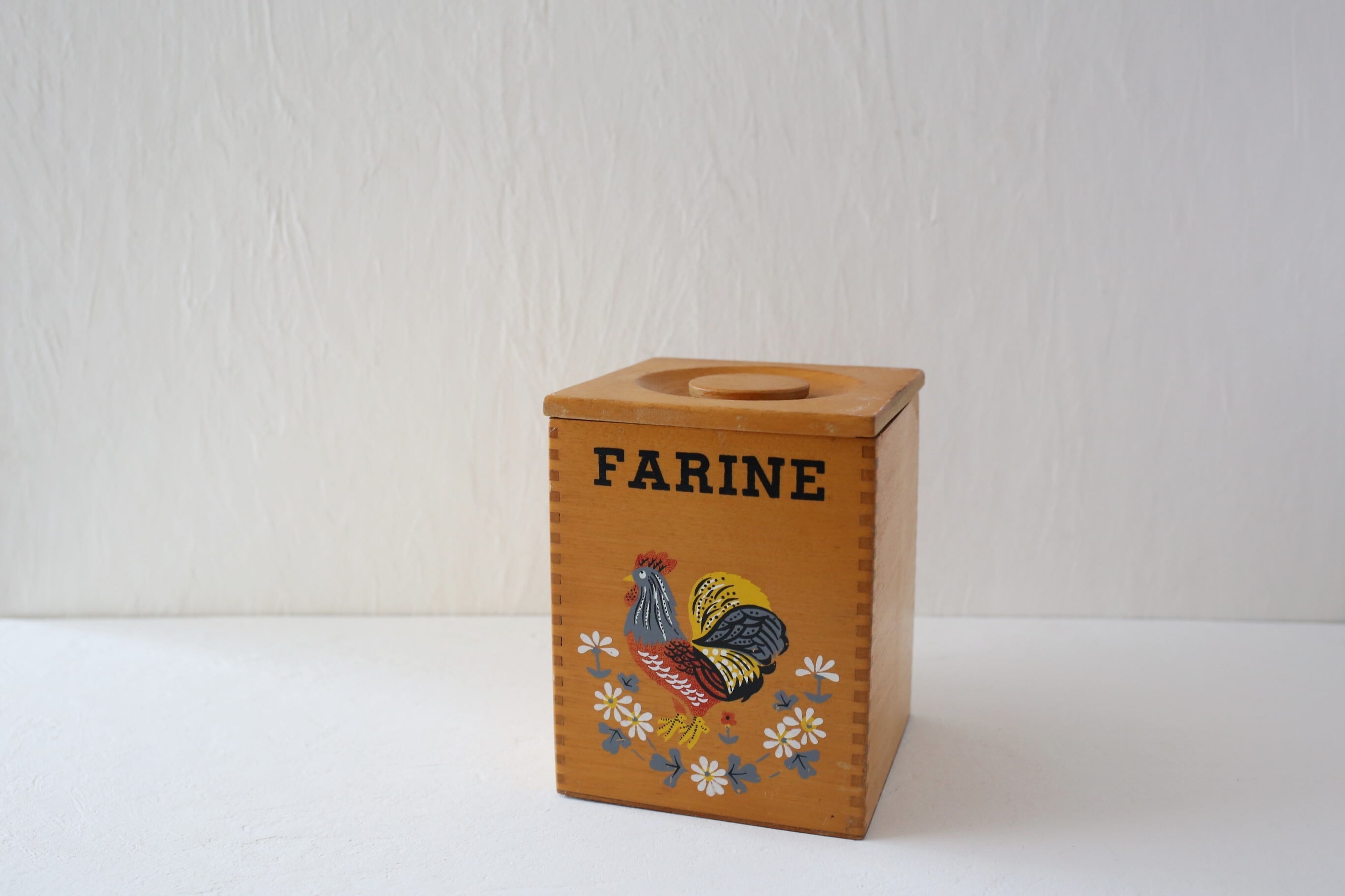フランス アンティーク ヴィンテージ 木製 キャニスター 4個セット 『ニワトリと花』 N-01063