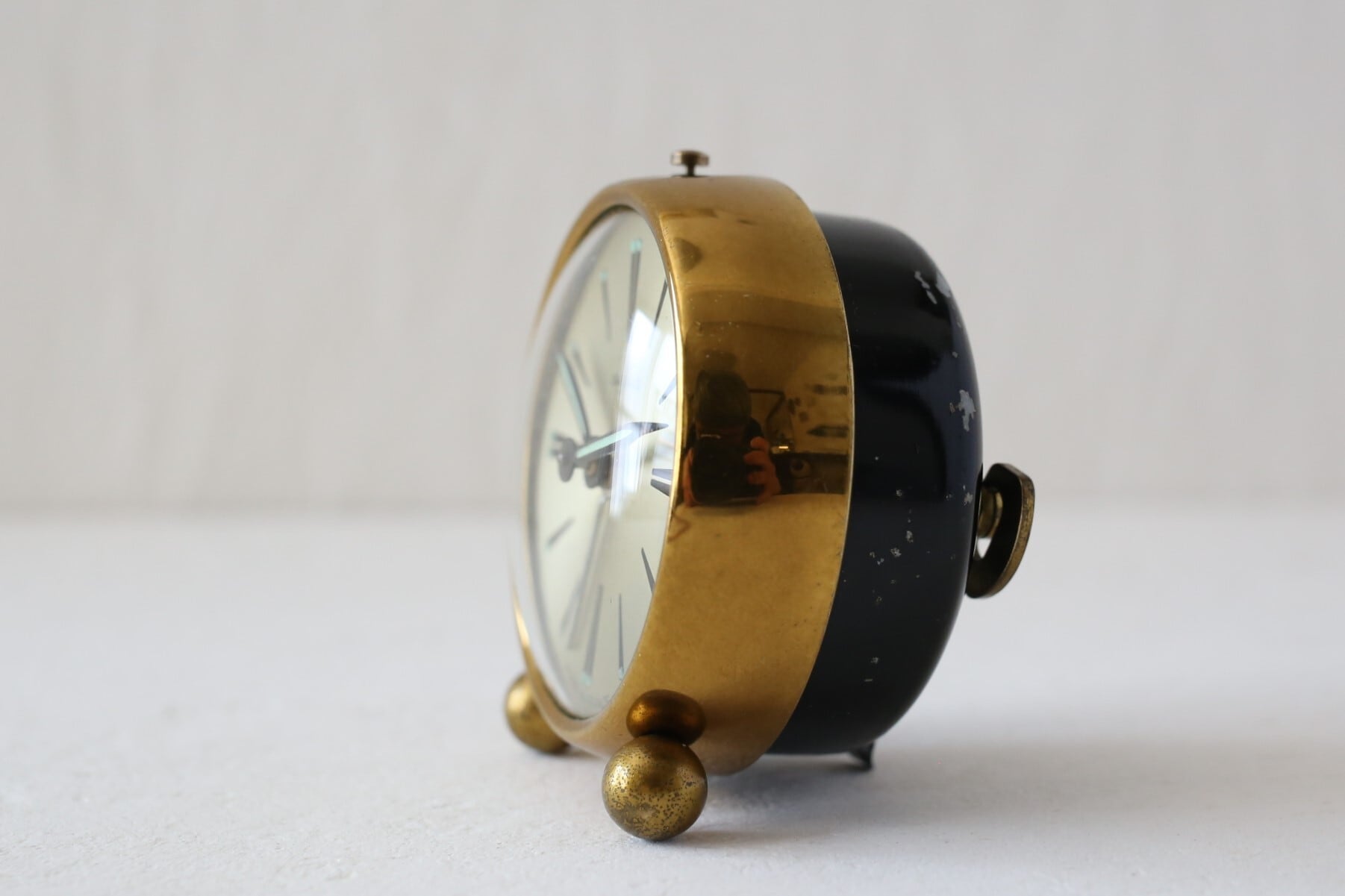 フランス アンティーク ヴィンテージ BAYARD 小さな目覚まし時計 ブラック×ゴールド N-03602