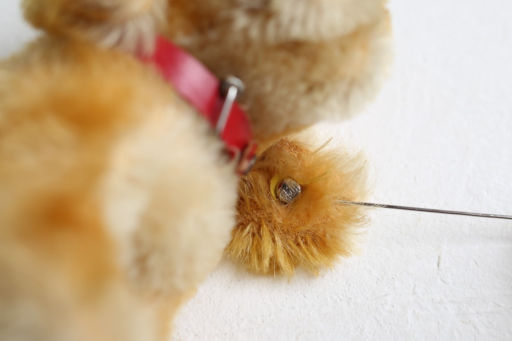 シュタイフのぬいぐるみは一体一体表情が異なりますが、白目のあるポンチ目がやや斜め上を見上げていて愛くるしい表情をしています。