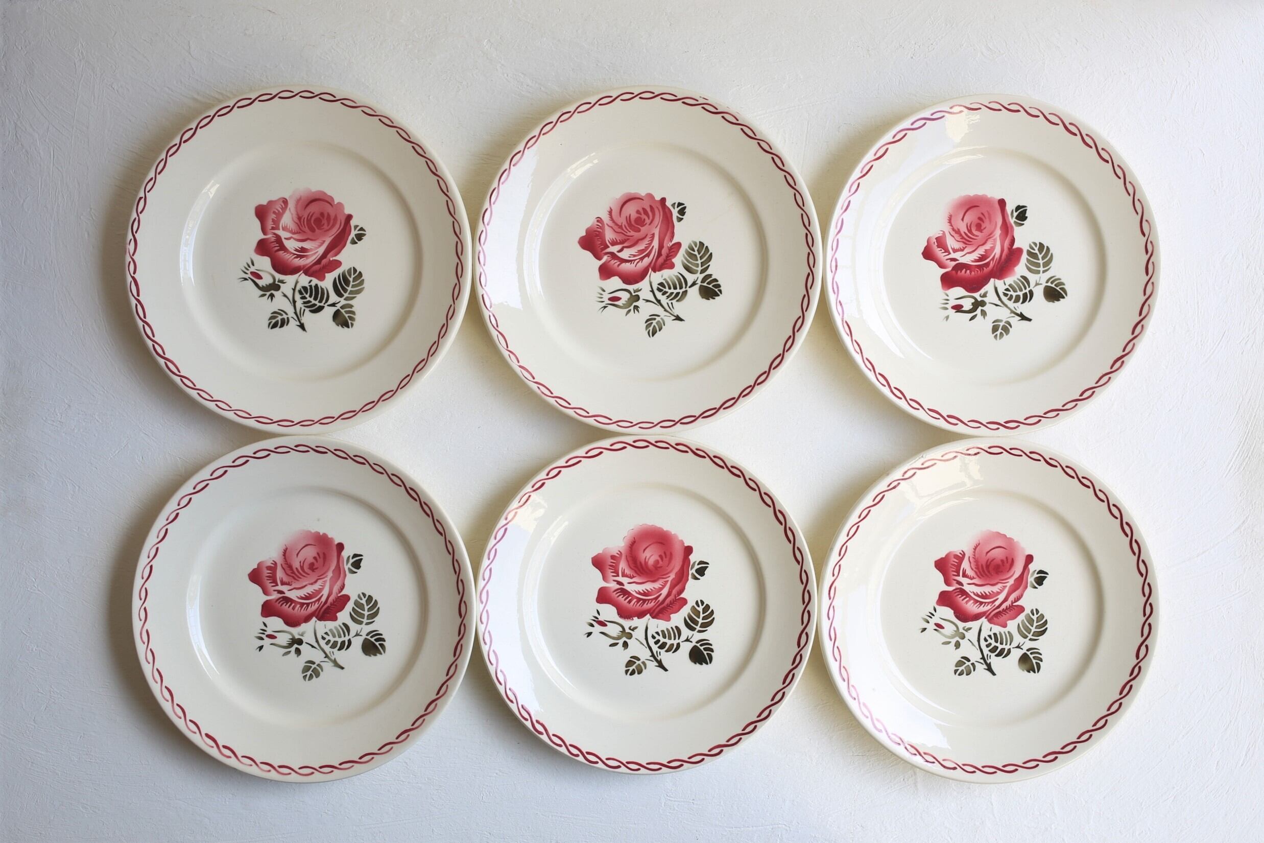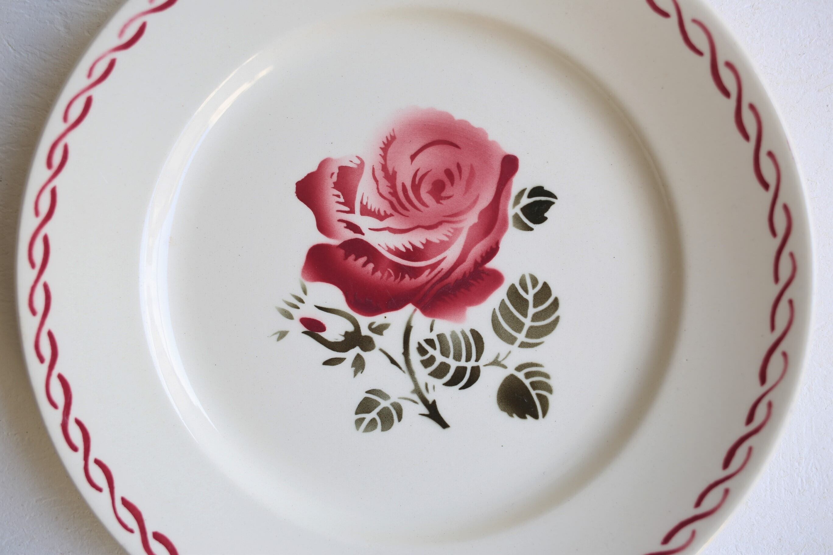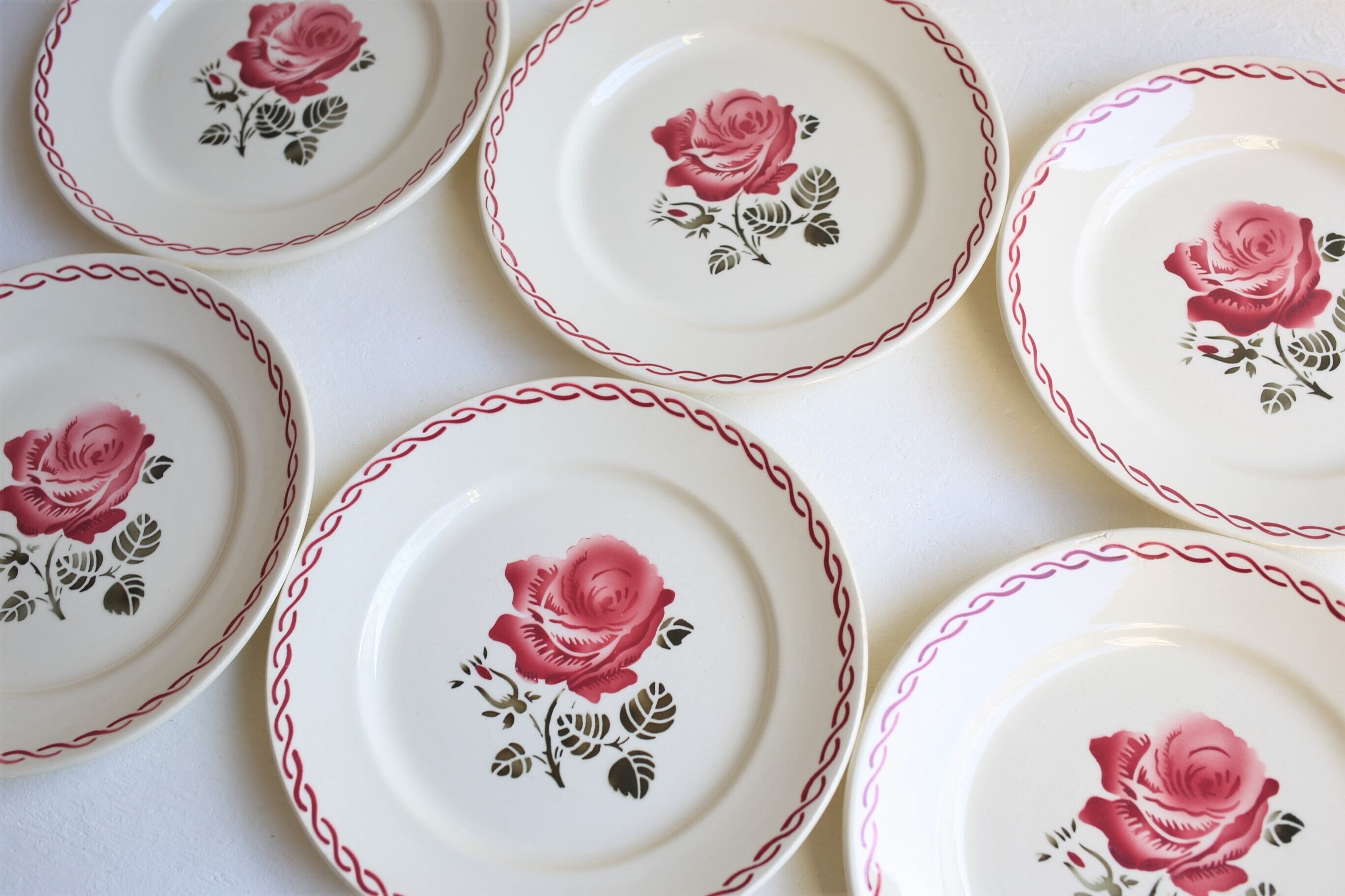 フランス アンティーク ヴィンテージ Badonviller バドンヴィレー ローズ 平皿 N-03691c